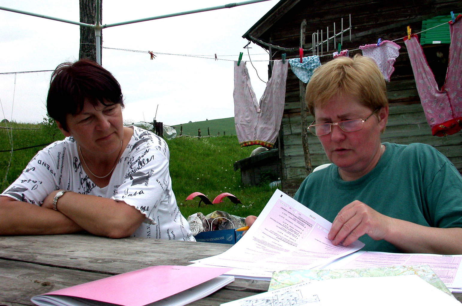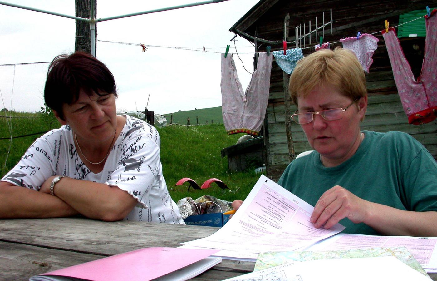 Rachmistrze spisowi są w każdym zakątku kraju, nawet w tak dzikiej i odludnej dolinie jaką jest dolina pod Krywem nad Sanem w Bieszczadach. Na fot. rachmistrz Antonina Majsterek Rachmistrze spisowi są w każdym zakątku kraju, nawet w tak dzikiej i odludnej dolinie jaką jest dolina pod Krywem nad Sanem w Bieszczadach. Na fot. rachmistrz Antonina Majsterek "spisuje" mieszkańców tej okolicy. PAP