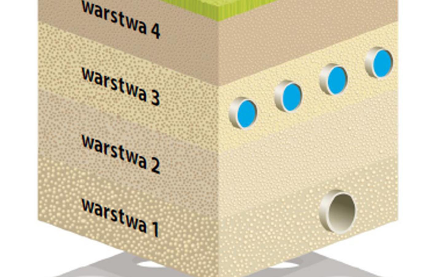 Czwarta z kolei to warstwa nośna – wegetacyjna (10–20 cm), mieszanka piasku z 10–15 proc. domieszką urodzajnej ziemi. Tutaj korzeni się darń. Dla gry najlepiej, gdy trawa ma 2,5–3 cm grubości, dla trawy, gdy ma 4 cm. Do tego kilkanaście zraszaczy wokół boiska i kilka na płycie. System połączony jest z komputerem pogodowym, który reguluje podawanie wody.