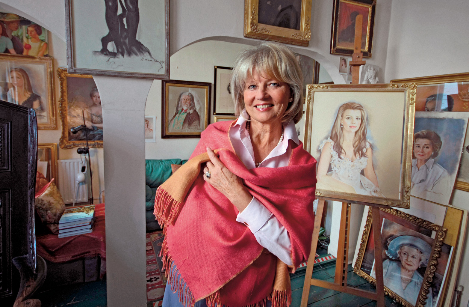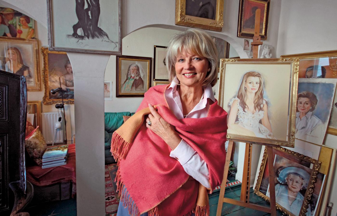 Pierwszą wspólną wystawę zorganizowałyśmy z przyjaciółką w rzymskiej galerii niedaleko Colosseum. Pokazałam same abstrakcje i jeden autoportret z abstrakcyjnym tłem. Na wernisażu wszyscy zbiegli się wokół portretu, pytając: jeśli umiesz tak malować, dlaczego tracisz czas na abstrakcje? Posypały się zamówienia. Bardzo ważnym momentem w moim życiu była wystawa na słynnej via Margutta w Rzymie. Jeden obraz wyróżniał się z całej reszty – portret przystojnego księcia Raymondo Orsiniego, którego poznałam na nartach w Austrii. Nie wiedziałam wtedy, że był popularną osobą w Rzymie. Na wernisażu publiczność zgromadziła się wokół tego portretu. Zrozumiałam, że ważna jest nie tylko jakość obrazu, ale też kogo się maluje. I że widzowie lubią osoby znane, bo mogą łatwiej ocenić podobieństwo, czyli mój warsztat. Potem przyjechałam do Anglii. Już wiedziałam, że będę się mogła utrzymać z malowania portretów na zamówienie. Ale żeby tu mieszkać, musiałam mieć pozwolenie na pobyt. Zostałam Brytyjką, bo wyszłam za mąż za Anglika.