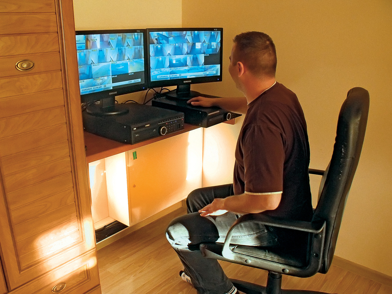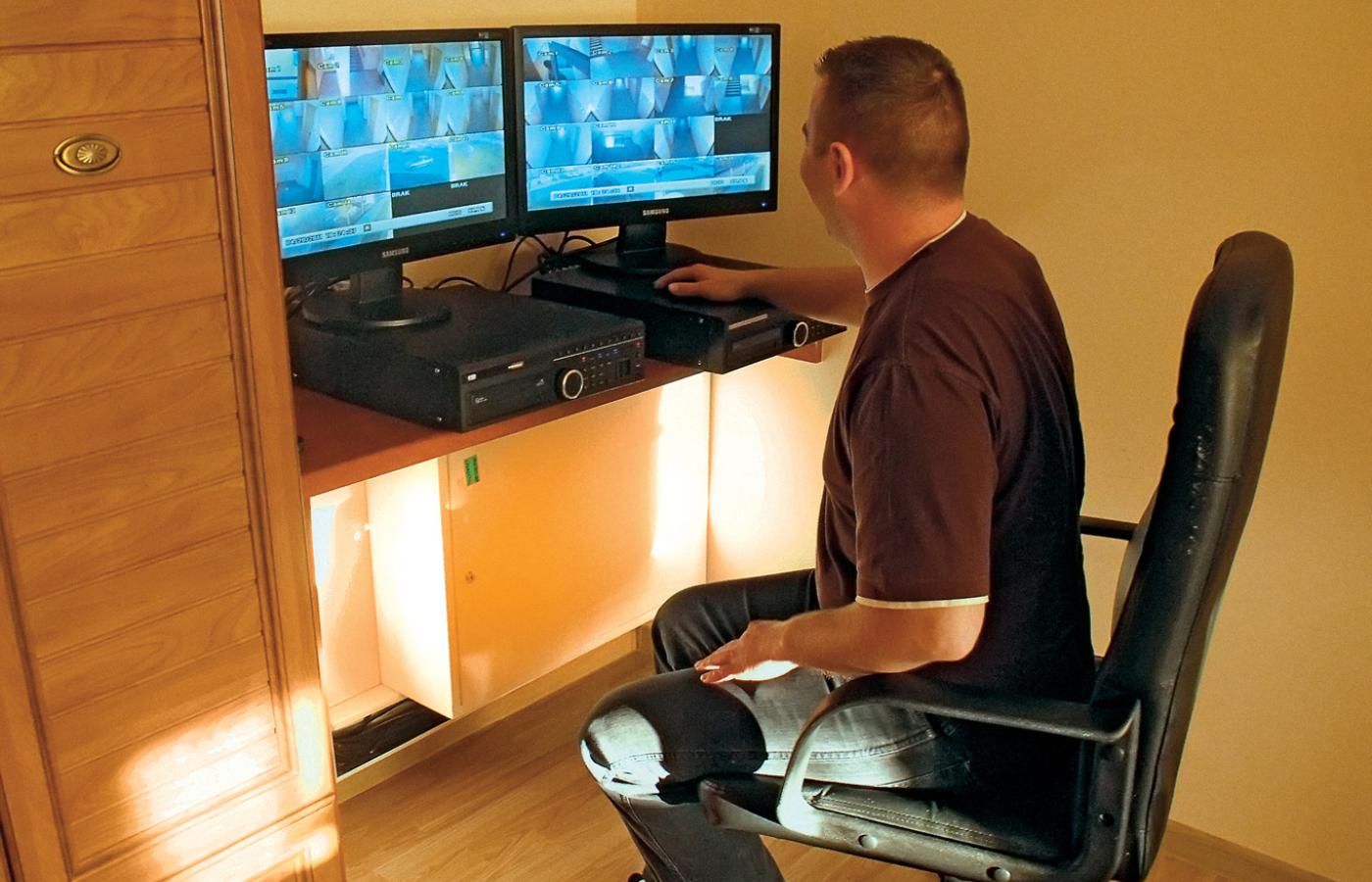 Minął okres ulgowy. W służbowym mieszkaniu na parterze zamieszkał gospodarz z żoną. Na dwóch monitorach zainstalowanych w pokoju córki na zmianę kontrolują życie mieszkańców, rejestrowane przez kilkadziesiąt kamer zamontowanych na klatkach. Jeśli zaobserwują niesubordynację, dzwonią na posterunek, wyposażony w specjalną antenę na dachu. Wtedy policjanci drogą internetową wchodzą w czasie teraźniejszym w ten sam obraz, który gospodarz ma na monitorach, i podejmują interwencję. Zdarzenia są archiwizowane na pendrajwie. Jeśli skumulują się na koncie jednego mieszkańca, zarządca podejmuje decyzję eksmisyjną.