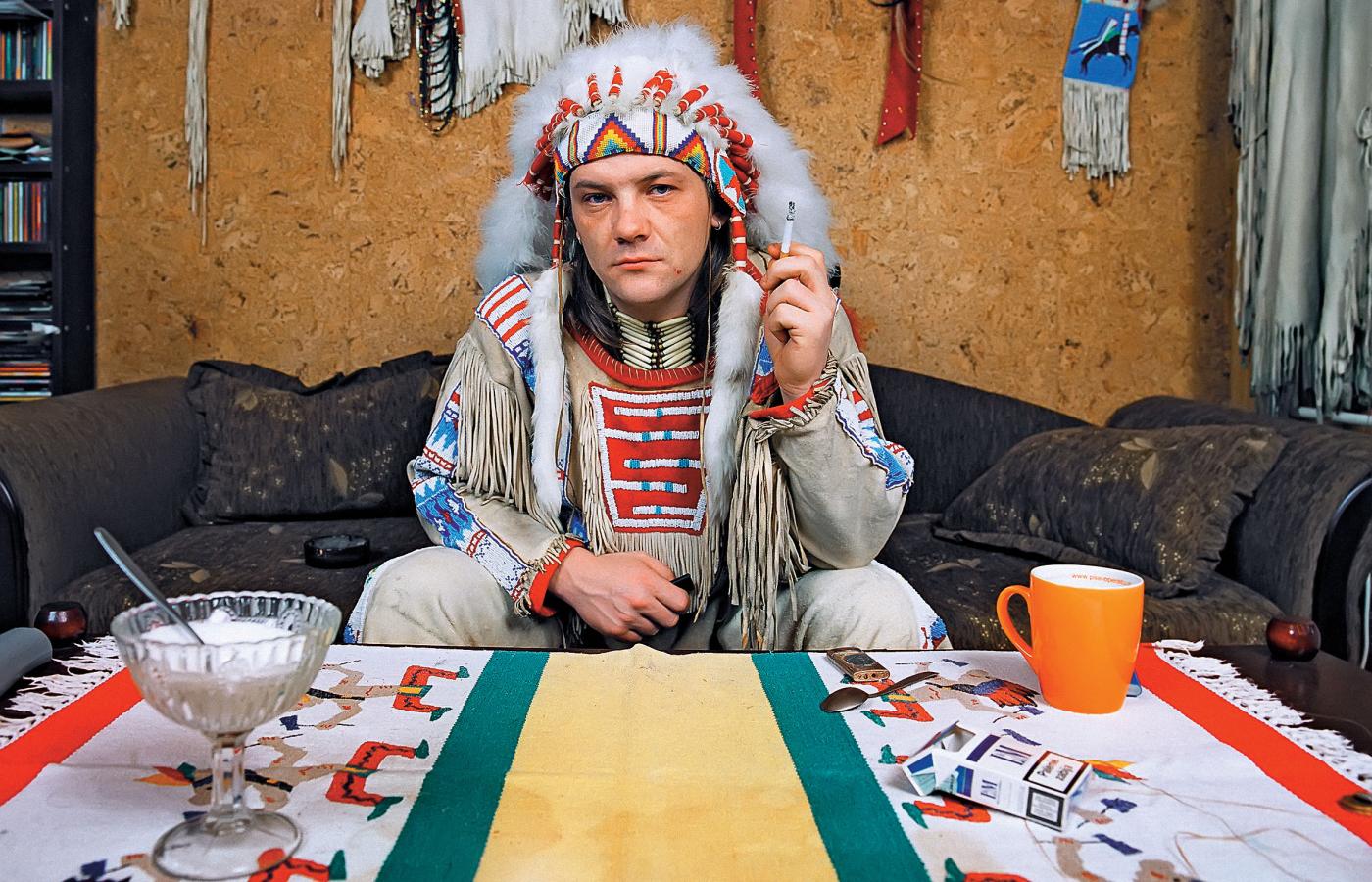 Marek Ptasiński (l. 40) żyje z tego, że jest Indianinem. – Dorastałem w złotym czasie westernów. Na podwórku stawialiśmy wigwamy, strzelaliśmy z łuków. I nie wyrosłem z tego – mówi. Od kwietnia do końca czerwca mieszka w wiosce indiańskiej pod Jaworznem. – Ulica Bratków, numeru nie ma, bo tu jest preria.