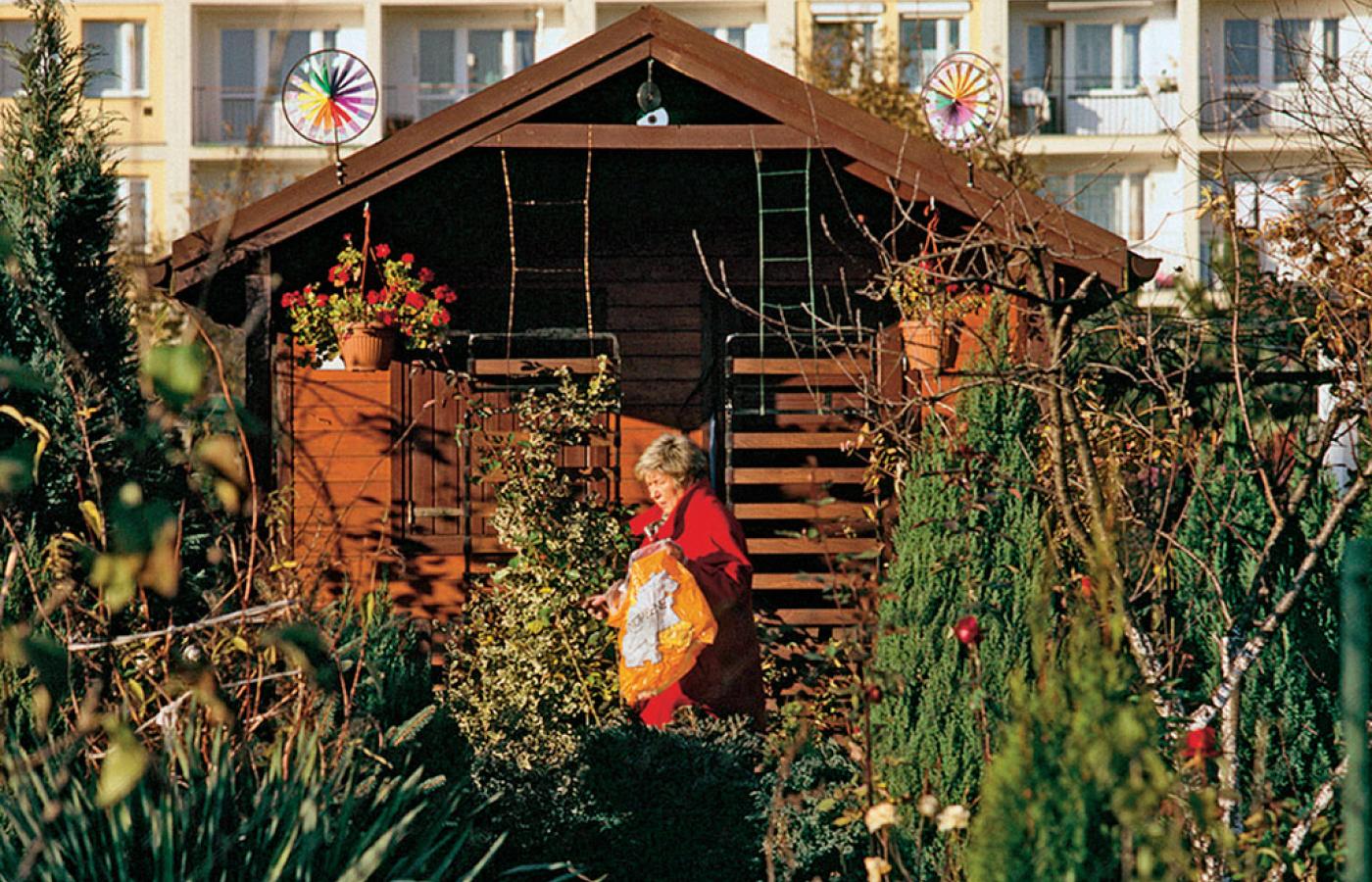Za czasów PRL wygląd działek powszechnie determinowało kilka czynników. Po pierwsze: wszechobecna funkcja aprowizacyjna. Władze oczekiwały (a działkowcy skwapliwie na to przystawali), by te kilkaset metrów kwadratowych rodziło jak największe plony: owocowe i warzywne. Ze skromną szopą służącą do przechowywania narzędzi. Bez architektonicznego rozpasania, pozwalającego na skojarzenie altany z daczą, bez marnowania cennych metrów na trawę czy ozdobne, bezużyteczne rośliny. Po drugie: bieda. Skromne altanki stawiano nie z materiałów budowlanych, ale z tego, co akurat było pod ręką lub udało się załatwić. Aż po rozwiązania wręcz ekscentryczne, jak upamiętniona na jednym ze zdjęć zafascynowanego działkami fotografa Jana Bujnowskiego altana, zbudowana cała z drzwi od wind. Po trzecie: brak wzorców. Zerkać można było co najwyżej na sąsiada i zapożyczać pomysły z telewizyjnego programu „Zrób to sam”. Zawsze jednak – niezależnie od możliwości – działkowe standardy estetyczne wyznaczane były w wyraźnej kontrze do wszechobecnego dookoła smutnego i szarego modernizmu. Tu – uciekając od codzienności – stawiano na kolor, fantazyjne wzory, indywidualność. Zgrzebną, to prawda, ale jednak osobną i będącą spontaniczną, ludyczną formą postmodernizmu.