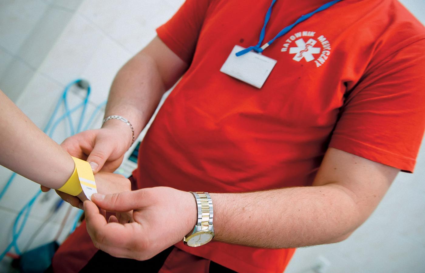 Dr Pona sądzi, że chyba nie będzie nietaktem, jeśli to powie. Opaskowanie jest stosowane od wieków na polach walki, przeniesione zostało do ratownictwa medycznego na wypadek zdarzeń masowych. Nazywa się triage (czyt. triaż) – z francuska: segregowanie. Pozwala pogotowiu jadącemu do zdarzenia masowego na sortowanie ofiar, dzięki czemu można wyciągnąć z tłumu potrzebujących pomocy najszybciej, zamiast ratować wszystkich naraz. Inaczej mówiąc, celem triage jest przerwanie procesu umierania u jak największej liczby osób i ratowanie tych, których można jeszcze uratować.
