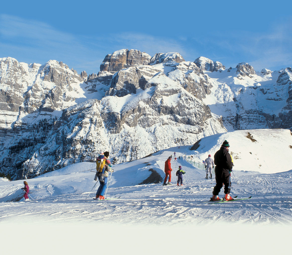 Ciąg skalistych szczytów, składających się na Dolomiti di Brenta, jest tak piękny i charakterystyczny, że stał się symbolem całego pasma. A że masyw góruje nad Madonną di Campiglio, silnie przyczynił się do popularności tej jednej z najsłynniejszych w świecie, ale i ciągle najpiękniejszych, narciarskich stacji. Bo cóż może być wspanialszego niż narty w takiej scenerii?