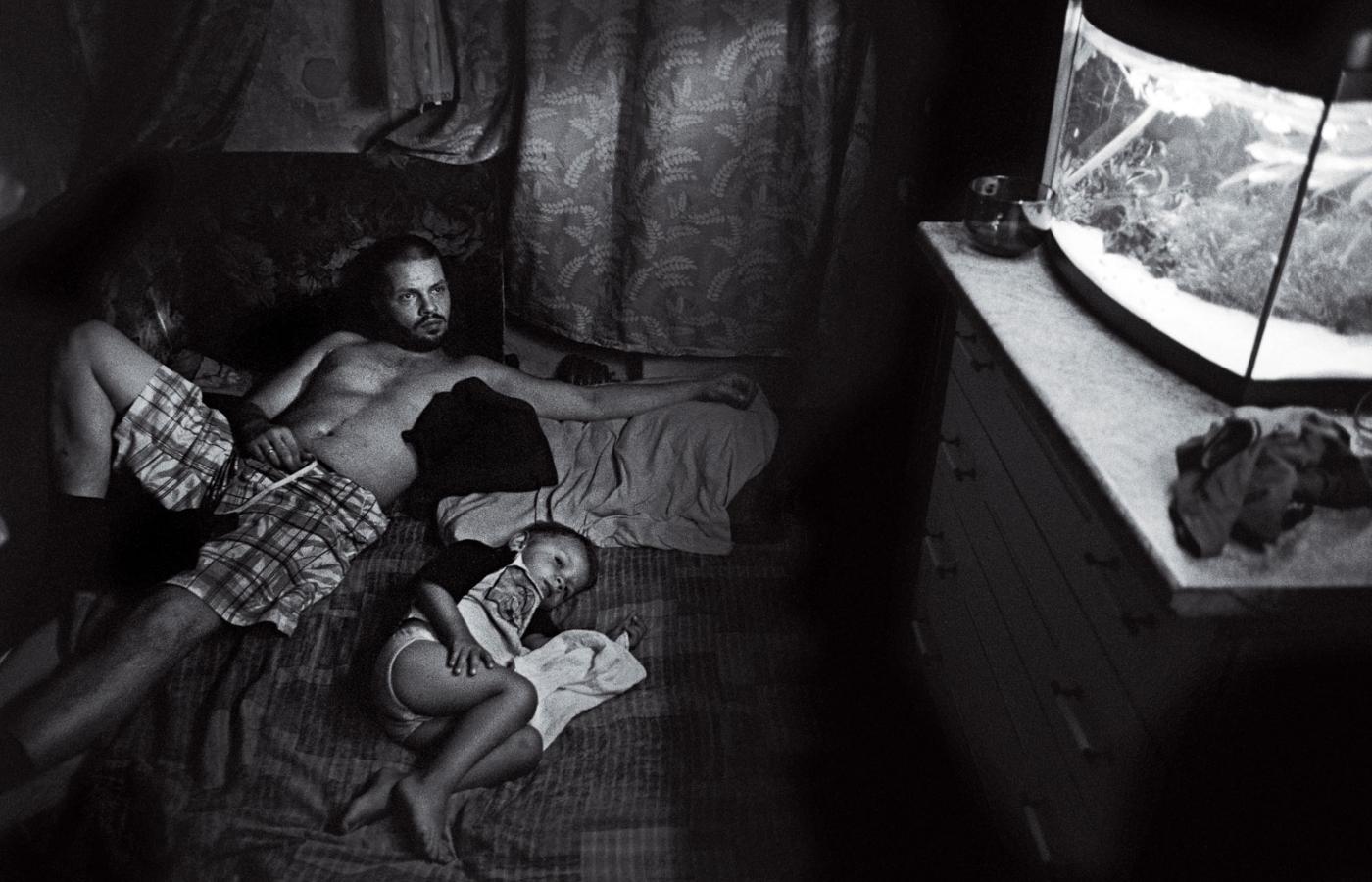 Na wystawie pojawiło się pięć fotografii Ady i Marcina. Na tym największym, do którego podeszli na otwarciu, Marcin leży w ciemnym pokoju z Wiktorem i patrzą na akwarium. – Fantastyczne jest to zdjęcie. Maciek rozmawiał z żoną w kuchni, wlazł do pokoju i zobaczył, że leżę z młodym. Oglądamy bajkę w telewizji, ale wygląda to tak, jakbyśmy patrzyli na akwarium. Z jakiegoś stołka trzaskał to zdjęcie. Kombinował strasznie – opowiada Marcin. Na innym Ada w ciąży, stoi w drzwiach w samym biustonoszu. Tego zdjęcia nie lubi specjalnie, nie czuła się w ciąży atrakcyjna. Ale Maćkowi zależało, więc się zgodziła. W końcu przyjaźń to nie jest tylko branie od kogoś, ale trzeba też dawać, pomyślała.