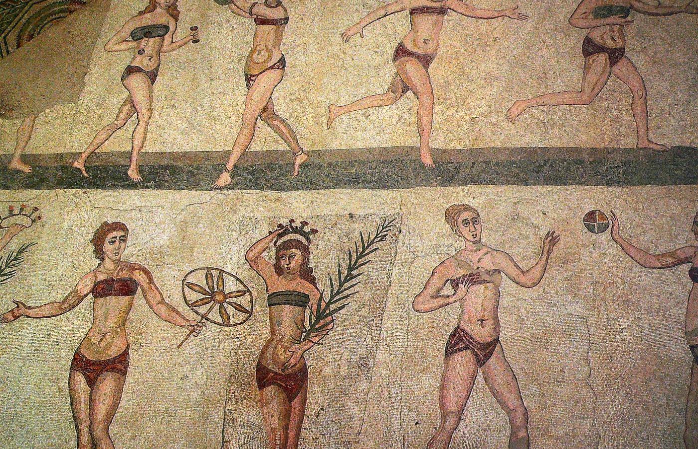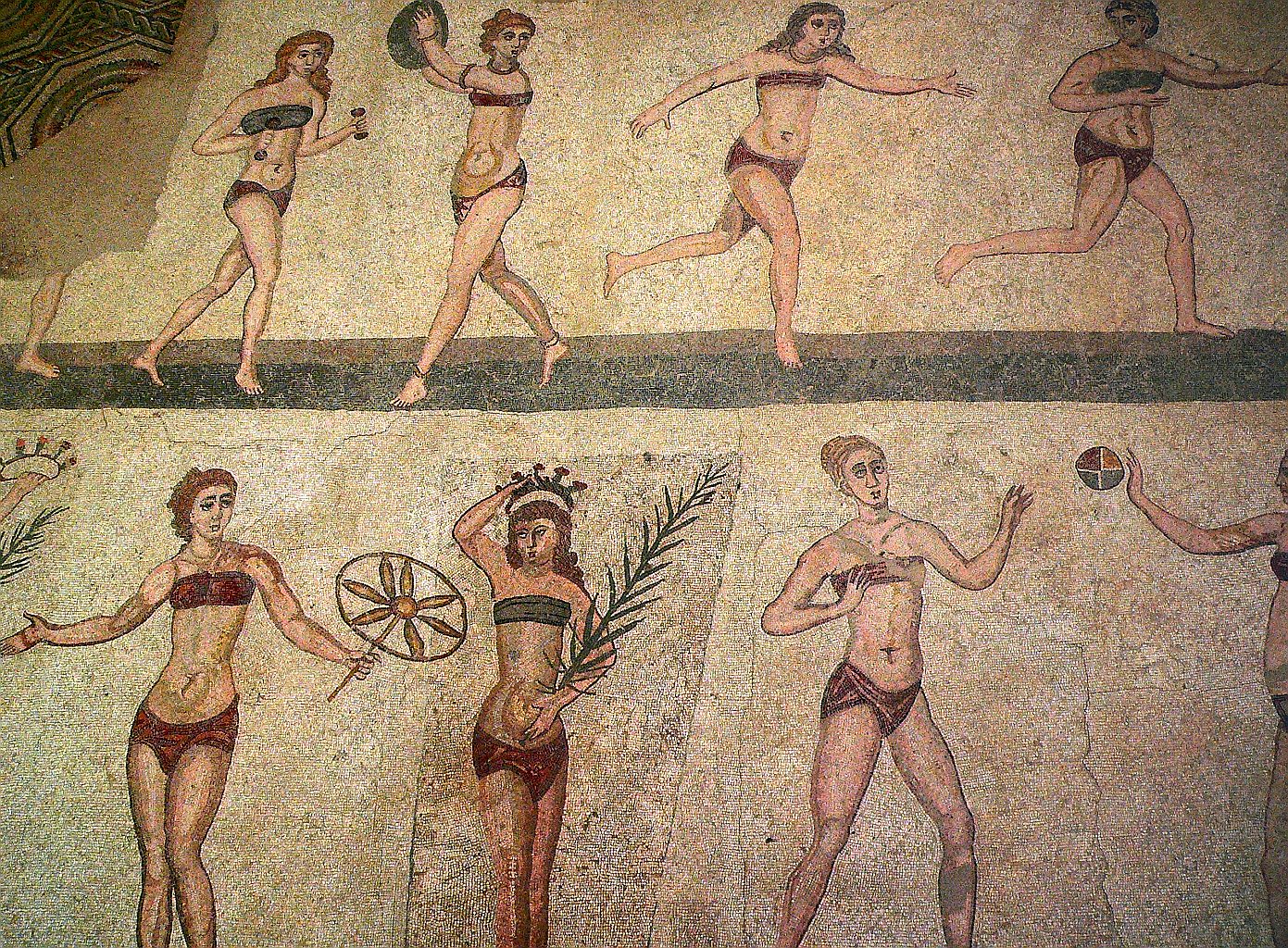 Plażowy kostium typu bikini znali już starożytni, o czym świadczą freski – ukazujące kobiety kąpiące się i baraszkujące na plaży – znajdowane na ścianach domów sprzed dwóch tysiącleci na Sycylii czy w Pompei. Skąpe kostiumy czy wręcz nagość na plaży dawno dawno temu nie były niczym niezwykłym. Potem jednak i kąpiele publiczne i plaża i stroje plażowe – wszystko to na wiele wieków odeszło w niepamięć.