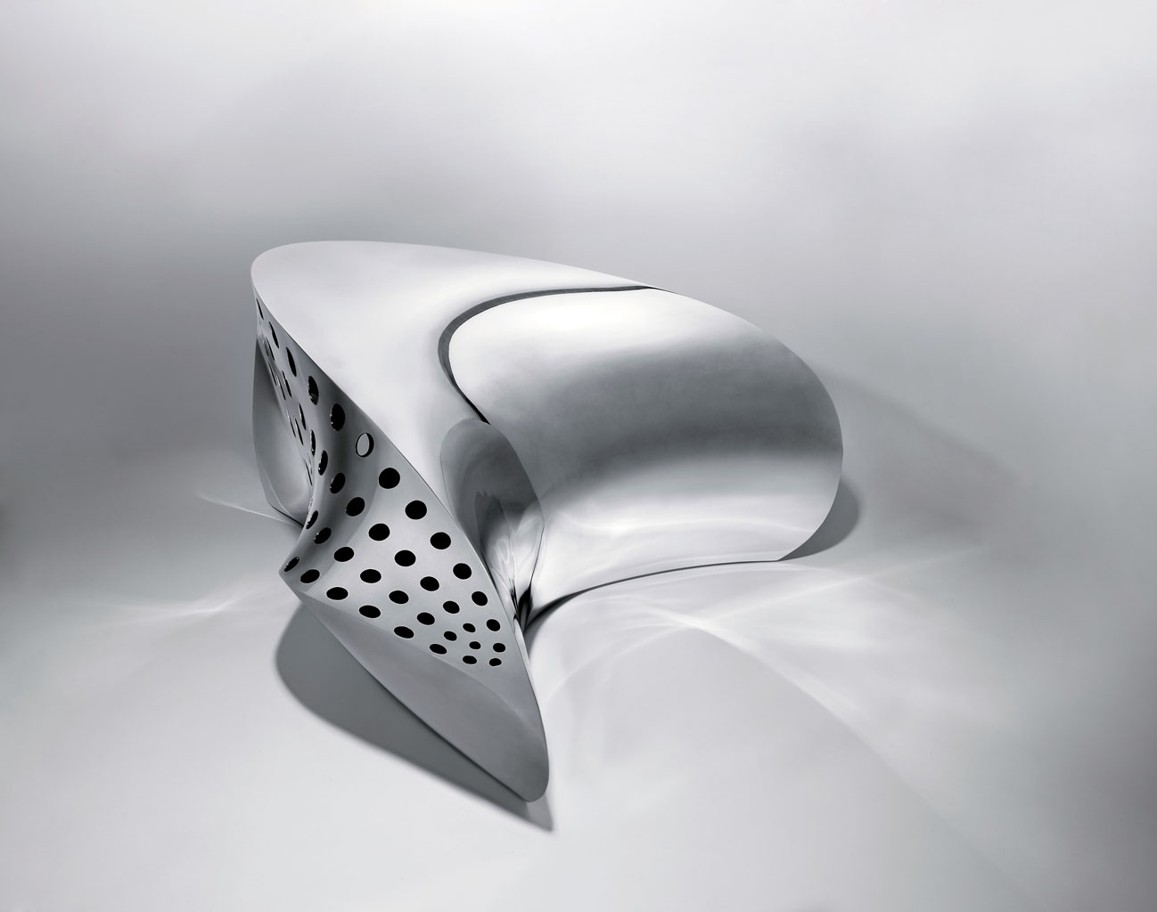 Wbrew pozorom Splice, czyli „węzeł”, nie jest pojazdem kosmitów ani dziwaczną rzeźbą wykradzioną z muzeum sztuki nowoczesnej. To siedzisko wymyślone przez Expand Design, firmę architektoniczno-meblarską. Spotykają się tu przyszłość z przeszłością: sztuczna inteligencja z rzemieślnikiem. Krzesło składa się z sześciu ręcznie wyciętych i połączonych kawałków aluminium, których kształt zaprojektował program komputerowy. Ciekawe, czy przy okazji policzył, jakie jest prawdopodobieństwo, że na Splice wygodnie się siedzi.