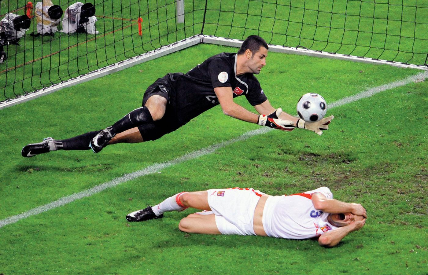 Hiszpanie dominowali, ale serca podbili Turcy. Turniej rozpoczęli od porażki z Portugalią, ale kolejne trzy mecze rozegrali zgodnie z zasadą: nacieramy bez opamiętania, ale najpierw stawiamy się pod ścianą. W spotkaniu ze Szwajcarią podnieśli się po utracie gola, a zwycięstwo zapewnili sobie w doliczonym czasie. Z Czechami przegrywali 0:2, żegnali się z turniejem, ale w ciągu ostatnich 15 minut strzelili trzy gole, w ostatnich sekundach grając w dziesiątkę po czerwonej kartce dla bramkarza Volkana Demirela (zastąpił go jeden z zawodników z pola). W ćwierćfinale z Chorwacją napięcie było umiarkowane, a skończyło się trzęsieniem ziemi: Chorwaci zdobyli bramkę w 119 minucie dogrywki i gdy wokół ławki rezerwowych tańczyli z radości, Turcy wyrównali, a potem wygrali po karnych.