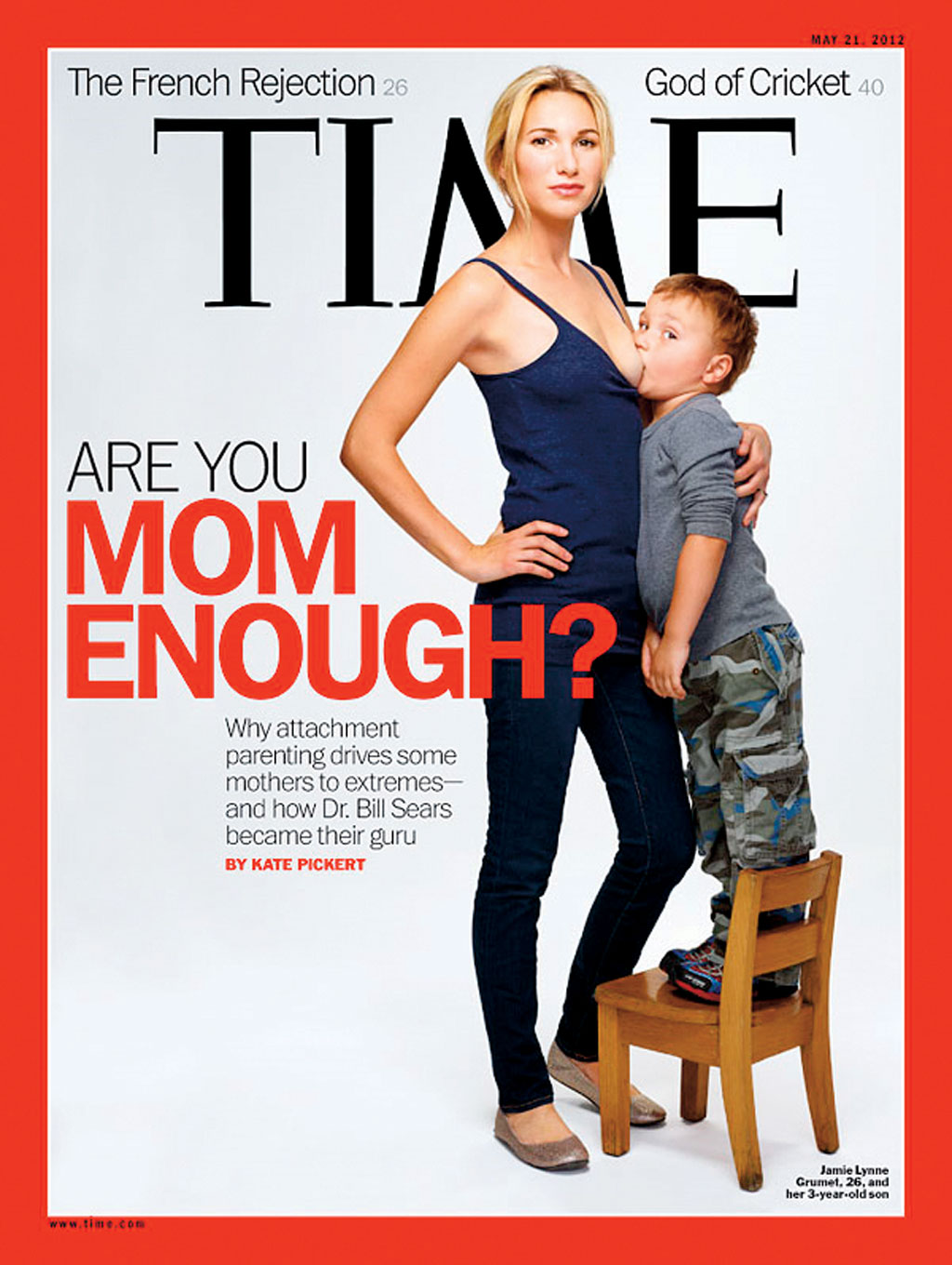 Stworzenie okładki, która zacznie funkcjonować w obiegu kultury jako mem, jest marzeniem każdej redakcji, a amerykański tygodnik „Time” jest tym, któremu udaje się to regularnie. Do galerii, w której znajdziemy wstrząsający portret Afganki pozbawionej nosa wyrokiem talibskiego trybunału czy błyszczące lustro „Człowieka Roku 2007 – czyli Ciebie”, dołączyła właśnie okładka, na której 26-letnia mieszkanka Los Angeles Jamie Lynne Grumet karmi piersią swego trzyletniego syna. Zdjęcie, opublikowane z nagłówkiem „Czy jesteś wystarczająco dobrą matką”, towarzyszy tekstowi o zaangażowanym rodzicielstwie.