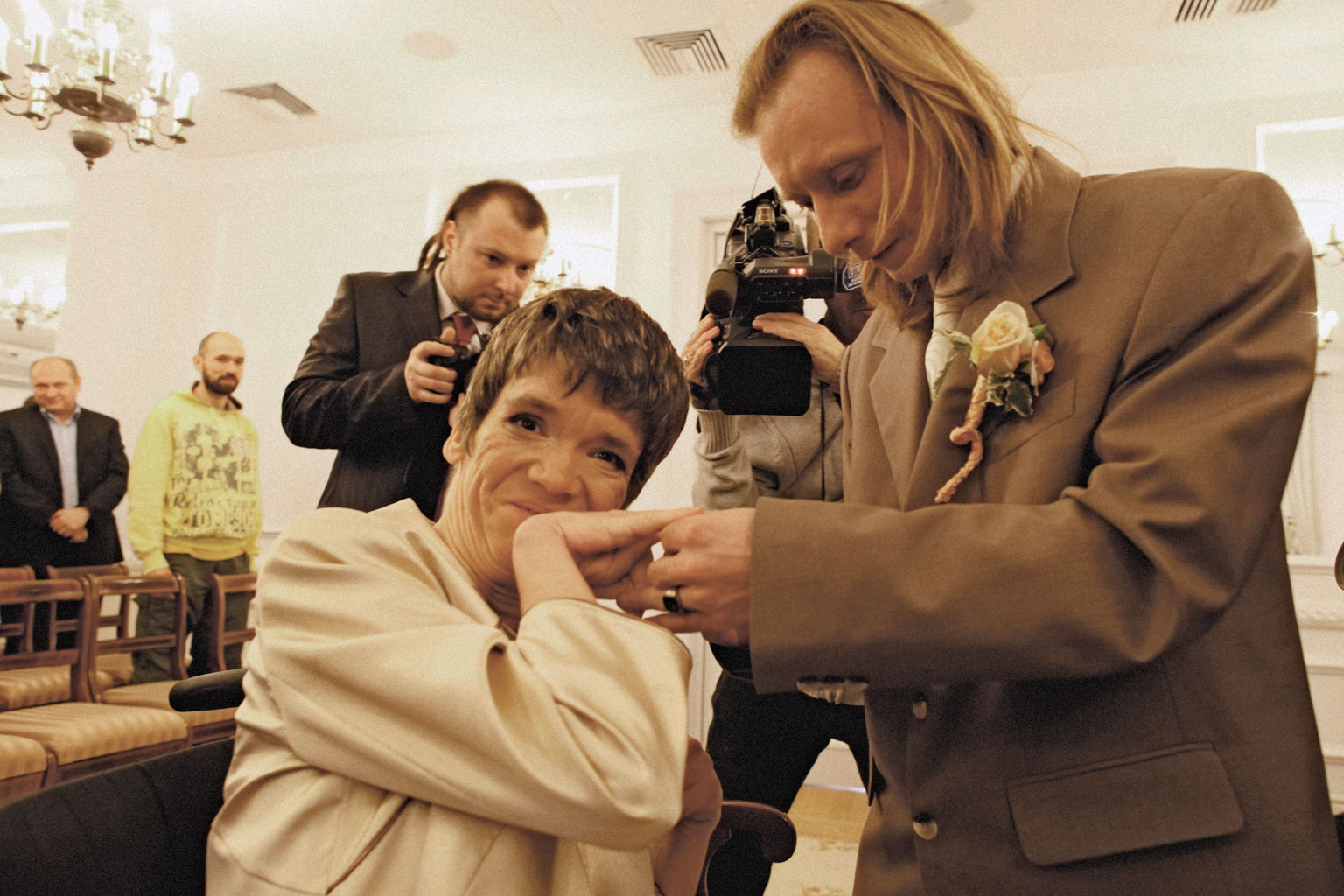 W mieszkaniu Kasi i Andrzeja na warszawskiej Pradze na ścianie wiszą dwa czerwone pluszowe serca, a w szafie wisi sukienka. Biała sukienka pożyczona od koleżanki na ślub kościelny. 14 kwietnia 2012 r. Kasia jechała w niej na wózku do ołtarza. Gazety pisały wtedy: „Szczęśliwy koniec rocznej batalii” albo „Uparta panna młoda. Wywalczyła zgodę na ślub”. Kasia wyciąga ją czasem, tak po prostu, żeby sobie popatrzeć.