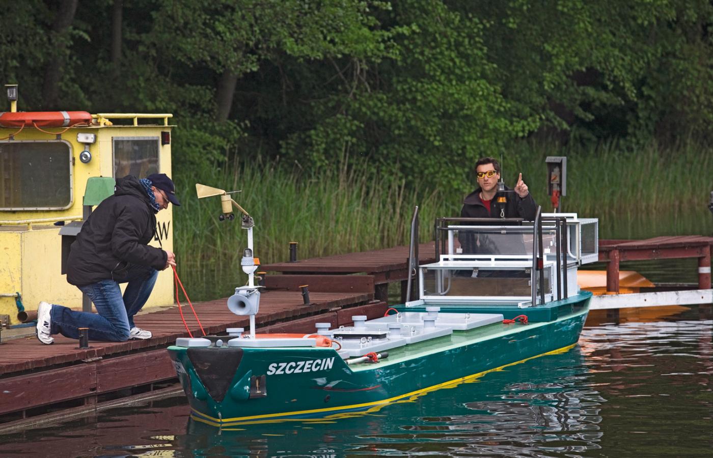 A tymczasem nad Slimem krótkie przerwy w zajęciach to czas ładowania baterii. Statków dosłownie, kursantów w przenośni. Wielkie akumulatory zasilające makiety statków starczają na kilka godzin manewrowania. Ale niektórzy mają ciężką rękę, więc podładowuje się je w czasie każdej przerwy. Kursanci oglądają swoje wyczyny na odczytach z GPS, naniesionych na mapę jeziora. Jacek Mostowiec, który odpowiada za sprawność sprzętu, żadnych map nie potrzebuje. On czyta umiejętności z rys na kadłubach. – Dobra grupa, tylko kilka większych rys – mówi. Pod koniec września trudno się będzie domyśleć, w jakim kolorze były kadłuby, bo pod Iławą dochodzi do co najmniej jednej katastrofy morskiej dziennie. Ale za to właśnie kursanci płacą.