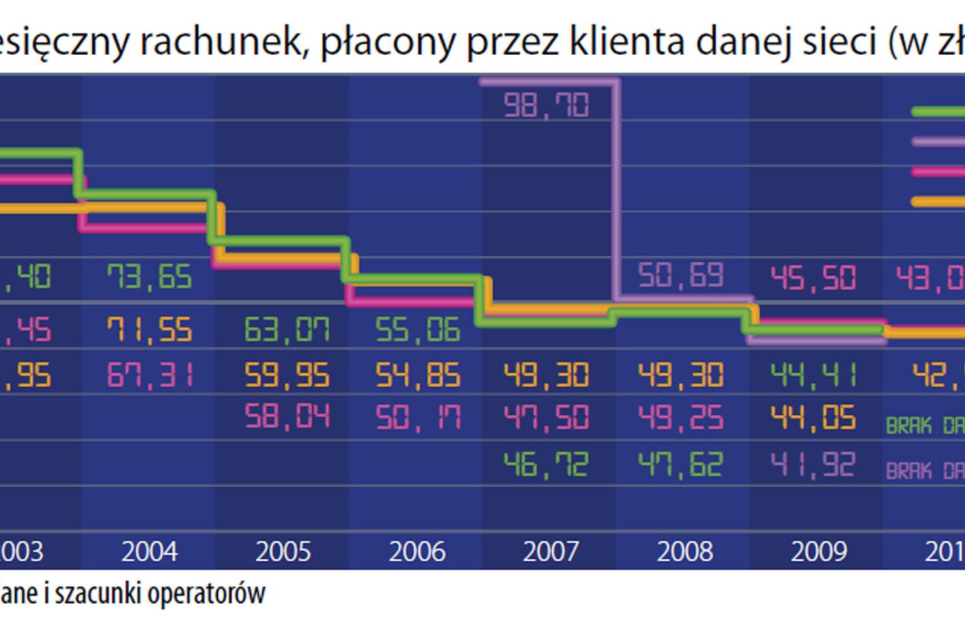 To, co jest dobre dla klienta, nie zawsze jest dobre dla biznesu. W ciągu 10 lat tzw. wskaźnik ARPU, czyli uśredniony rachunek płacony co miesiąc przez statystycznego użytkownika, spadł z prawie 100 zł do 40 zł. Nie da się też w nieskończoność rozwijać tylko dzięki przyrostom liczby abonentów. Już dziś – jako się rzekło – niemal każdy ma komórkę. To oznacza, że nowego klienta trzeba wydrzeć konkurencji. Dlatego żaden z operatorów nie może zwolnić tempa obniżki cen ani odpuścić sprzedawania subsydiowanych, tak bardzo ukochanych przez Polaków „telefonów za złotówkę”.