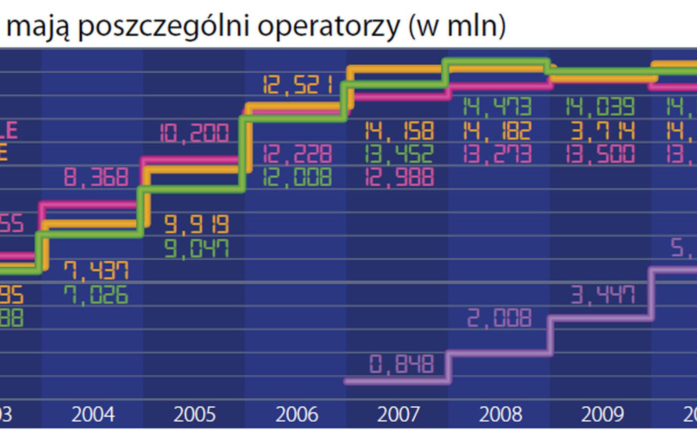 W 2003 r. Centertel (sieć Idea), który najpóźniej włączył się do wyścigu GSM, jako ostatni zaraportował niewielką stratę 100 mln zł. Od tego momentu wszyscy trzej operatorzy co roku zarabiają na czysto po ok. 1 mld zł każdy. Prawdopodobnie, bo można to jedynie szacować na podstawie jawnych raportów finansowych Plusa. W 2005 r. Idea zmieniła się w Orange, w 2011 r. Era w T-Mobile. Zostały wchłonięte przez globalne marki telekomów i tych informacji ujawniać nie chcą.