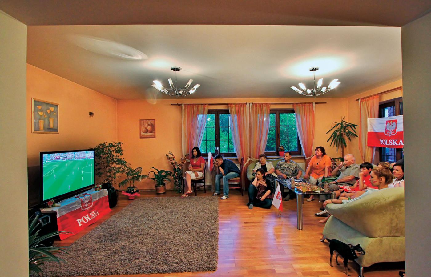20 minut zostało. Wszyscy powoli zbierają się w salonie. Są wygodne kanapy na środku pokoju, w odpowiedniej dla oczu odległości od telewizora. Jest plazma. 55 cali, informuje pani domu. Jest prawie 100 kanapek z trzech bochenków chleba. Dziadek Marian policzył. Jest zestaw kibica dla panów: piwo i chipsy. Są farby do malowania twarzy i biało-czerwone lakiery do paznokci – dla pań. Jest flaga rozpostarta pod telewizorem i szalik do kibicowania. Właściwie wszystko, czego potrzeba, już jest.