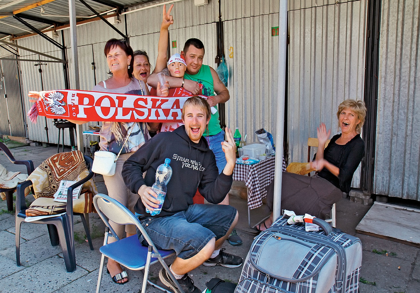Pani Marylka już od rana tak edukuje obcokrajowców. Wcześniej zawędrowali tu Włosi i Hiszpanie. Taka międzynarodowa impreza się zrobiła. Z Jadzią, Kasią, Ulą i Tereską przyniosły faszerowane pieczareczki, szaszłyki, żeberka, owoce. Ustawiły stoliki i grilla pod blaszaną wiatą. Pani Marylka ustroiła nawet manekina – w czerwoną sukienkę z falbanami, czapeczkę i szalik kibica. Teraz taka moda – na wesela, przyjęcia wypada ubrać się na biało-czerwono. To przyjęcie zorganizowały z okazji, że Polska wygra 4:0 z Czechami. Miały być same, a tu tacy mili goście co chwilę ich odwiedzają.