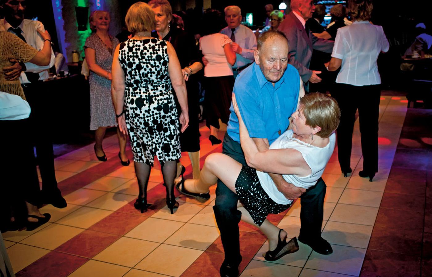 Niedziela, Bolek, godz. 14.17. W dwie minuty po tym, jak zaczęło się niedzielne popołudnie dla seniorów, parkiet jest pełen tańczących, nikt nie siedzi przy stoliku. Mężczyźni (mniejszość) i kobiety (miażdżąca większość) na wysoki połysk. U mężczyzn obowiązkowy garnitur. U kobiet imprezowa klasyka: koronki, skóra, panterka. Króluje długość poniżej kolan, ale mini też się trafia. Odkrytych dekoltów nie brakuje. Klimat zabawy i flirtu, jak to na dyskotece.