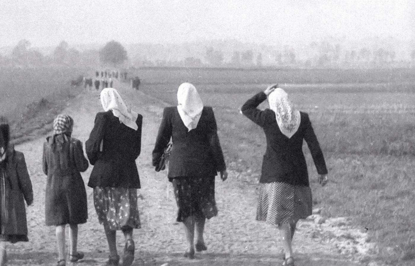 Oni jeździli na wschód, a do nich przyjeżdżali Niemcy. Kiedyś pod dom Gustka w Brzózce podjeżdża wóz kempingowy. Ciemno, noc, coś na migi pokazują. Kobieta wychodzi z samochodu. W jednej ręce trzyma zdjęcie. Na zdjęciu pałac, w którym kiedyś mieszkali. Po wojnie PGR, a potem ferma gęsi. W drugiej ręce pomarańcze. Przyjeżdżali potem jeszcze parę razy. Gustek zrobił zdjęcie przy wspólnym stole.