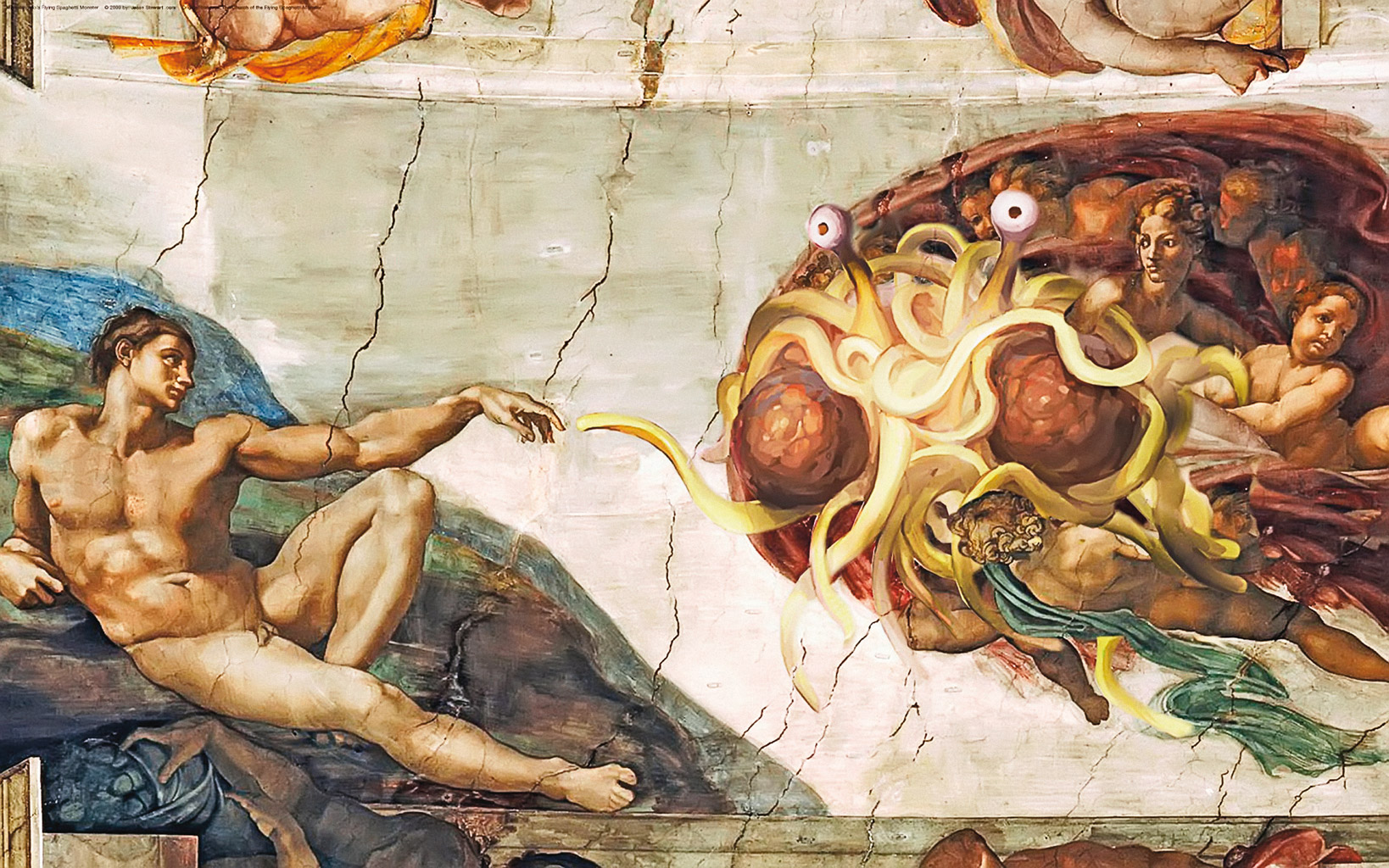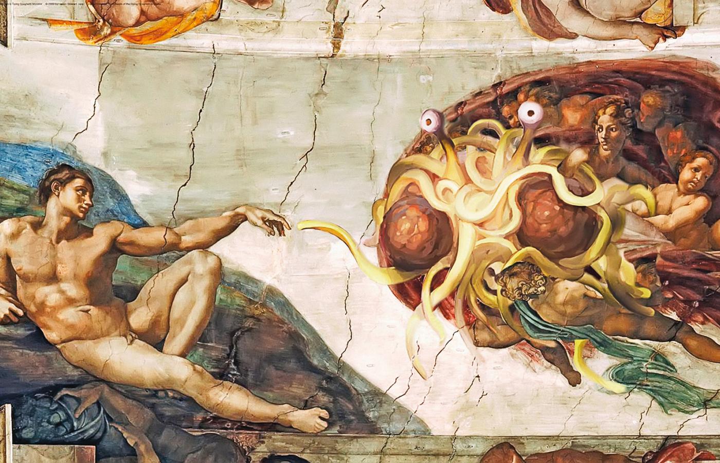 Pastafarianie, bo tak nazywają się członkowie Spaghetti Kościoła (od włoskiego słowa pasta, czyli makaron), organizują się nad Wisłą od blisko dwóch lat. Wiosną 2011 r. otrzymali błogosławieństwo Bobby’ego Hendersona, guru, proroka i twórcy makaronowej religii w jednej osobie. Sześć lat wcześniej ten sam Henderson, wówczas 25-letni fizyk, zaprotestował przeciwko planom nauczania w Kansas tzw. teorii inteligentnego projektu (w przeciwieństwie do darwinizmu, głosi ona, że za procesami przyrodniczymi stoi Inteligentny Projektant, w domyśle – Bóg). Według niego równie uprawniona, co kreacjonistyczna wizja stworzenia świata, była jego hipoteza o tym, że Ziemię wydobył z nicości i ukształtował Potwór Spaghetti – plątanina makaronu z sosem i dwoma mięsnymi pulpecikami. Henderson dowodził, że wielbienie tak abstrakcyjnego tworu i wiara w jego moce sprawcze wcale nie są bardziej absurdalne od czczenia przez ludzkość innych wyobrażeń boskości. A skoro w szkołach można nauczać o inteligentnym projekcie – jednej teorii o religijnym charakterze, której nie sposób zweryfikować narzędziami nauki, to tak samo uprawnione są teorie inne, nawet te najbardziej absurdalne i szalone.