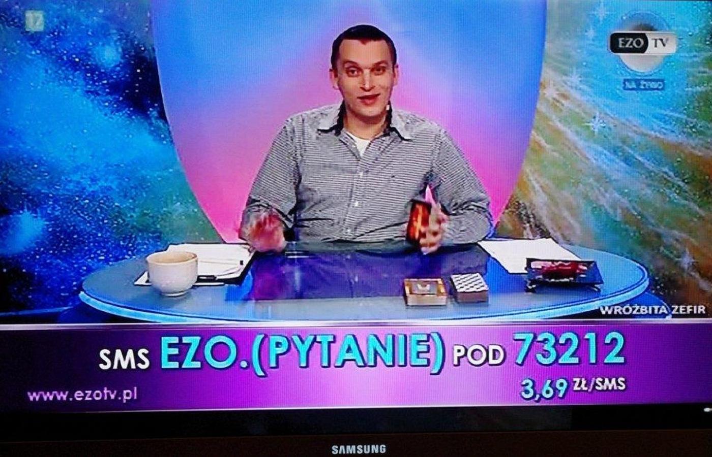 Przykładowo, noc z niedzieli na poniedziałek. Na kanale ITV przyjmuje (4,92 zł za minutę połączenia) Zefir. Bardzo bezpośredni wróż. Potrafi powiedzieć: jakby pan nie zadzwonił do mnie, toby wycięto panu wątrobę, a tak to przetransformujemy, albo: u pani się szykuje rak.