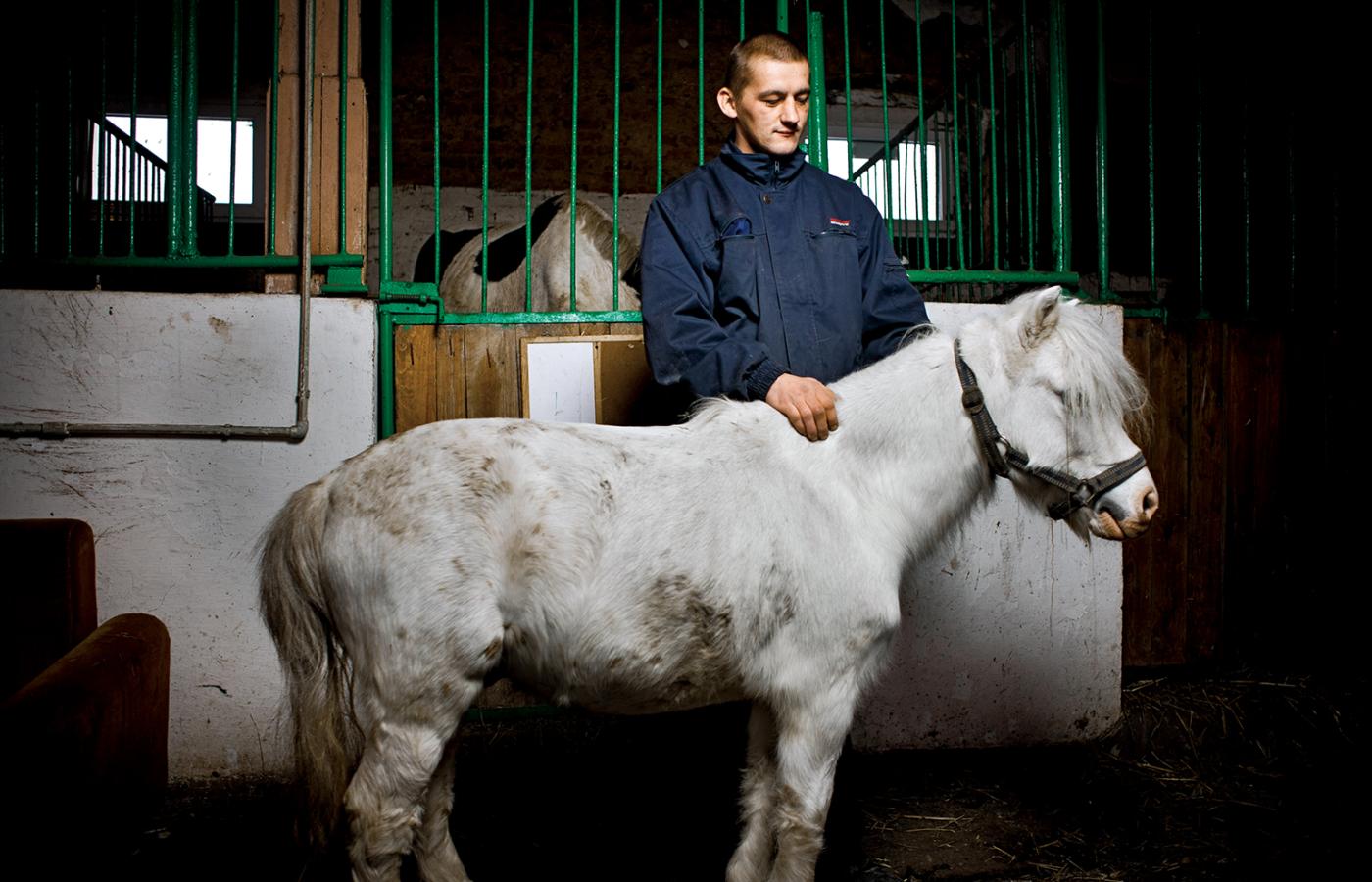 Krzysztof, 29 lat, cztery lata w więzieniu, do końca jeszcze osiem miesięcy, pracuje tu już półtora roku. Jak wyjdzie, to chciałby jeszcze stajnie dla koników dokończyć, więc będzie przyjeżdżał, daleko nie ma. Na przepustkach też często zagląda, zawsze jest sporo roboty przecież. W domu były psy, świnki, konie.