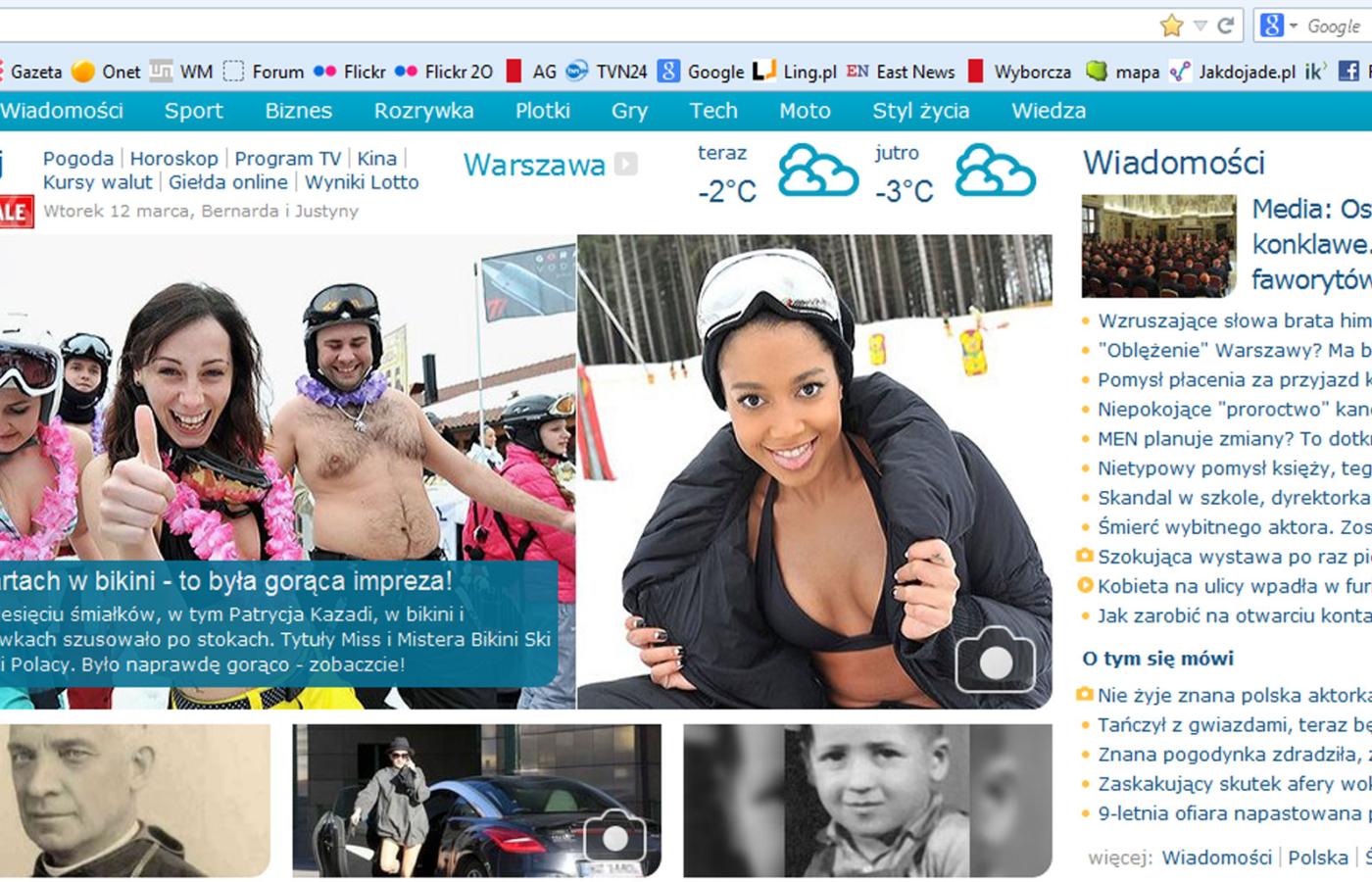 Pewnego dnia w lutym br. serwis Onet eksponował na swojej stronie między innymi takie nagłówki: „Wpadka lidera zespołu Weekend” (wyjaśnienie: w jednym z wywiadów nazwał mieszkańców Turcji „Turcjanami”), „Każda dziewczyna musi ją mieć w swojej szafie” (ołówkową spódnicę), „Piękna, rudowłosa dzikuska w Polsce” (Paramore i Asking Alexandria kolejnymi gwiazdami Impact Festival 2013), „Gwiazdor przygotowuje się na śmierć” (Stephen King nie chce, aby po śmierci inni autorzy kontynuowali jego powieści), „Nieprawdopodobny wyczyn.