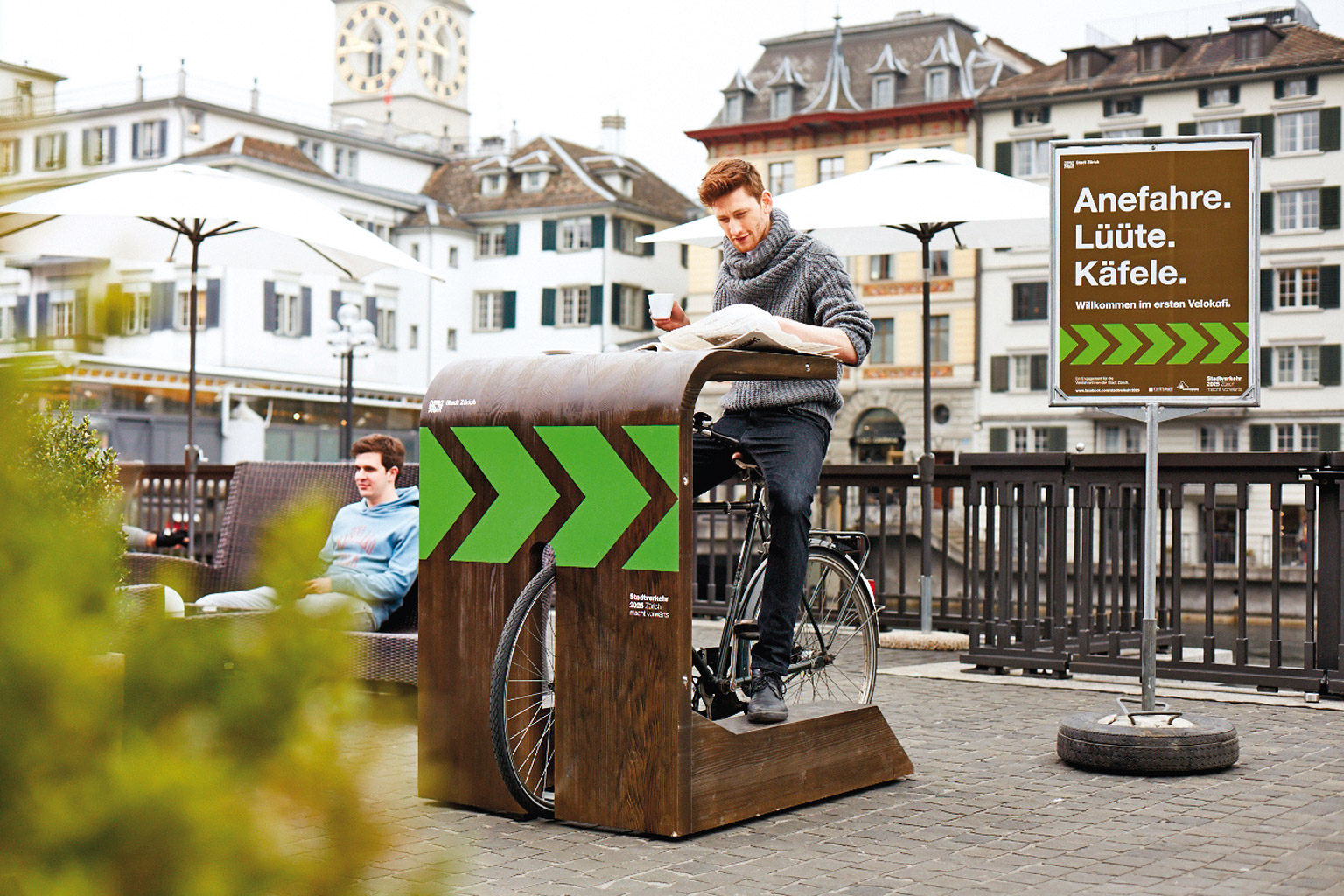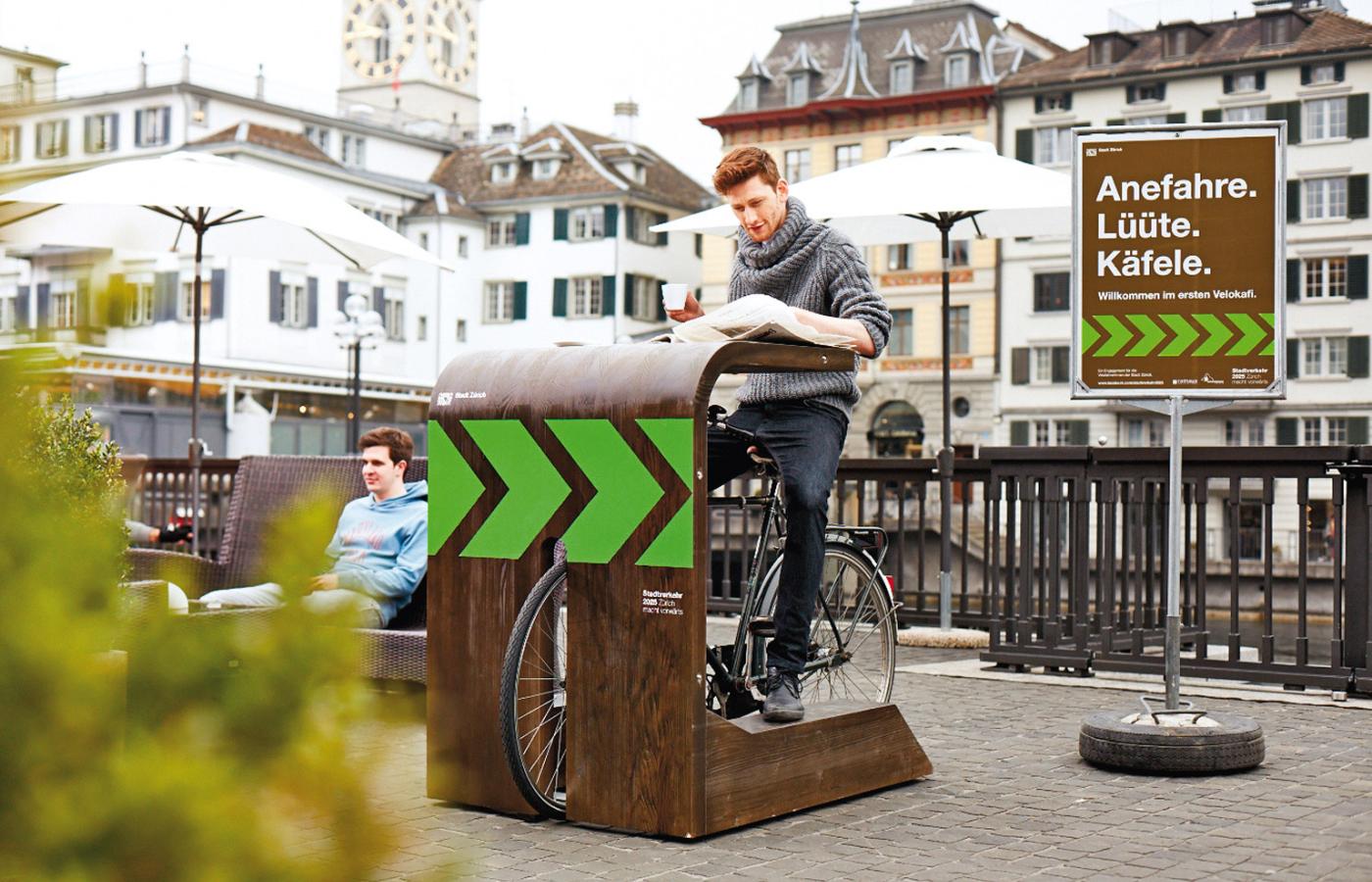 Oto idealny projekt dla tych, którzy najchętniej nie rozstawaliby się ze swoim rowerem. Oraz dla tych, którzy nie chcą tracić czasu na szukanie miejsca do przyczepienia go pod miłą kawiarnią. W szwajcarskim Zurychu, gdzie ruch jednośladów wciąż rośnie, władze miasta wdrożyły szereg inicjatyw wspierających cyklistów. Szczególnie podoba nam się Velokafi: odpowiednik parkowej ławki dla rowerzystów i stolika w jednym. Po przypięciu roweru możemy śmiało zacząć czytać książkę i pić kawę.