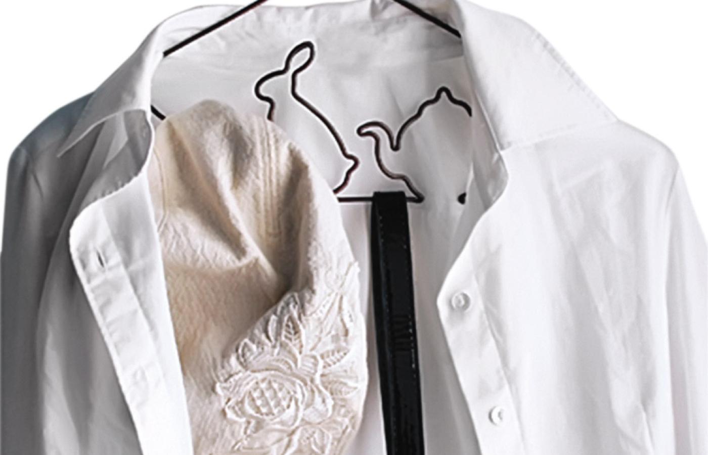 Tym razem obędzie się bez siniaków, bo łapiemy zwierzaka we własnej szafie. Potrzebny nam jest do tego pasek, krawat, apaszka albo mała torebka. Ale przede wszystkim wieszak My Story Hanger, zaprojektowany przez Aoi Kaori, którą najwyraźniej zafascynowała bajka o Alicji w Krainie Czarów, bo oprócz królika wygięła drucianą filiżankę i imbryczek. Oby z tego ostatniego nic się nie wylało do naszej szafy!