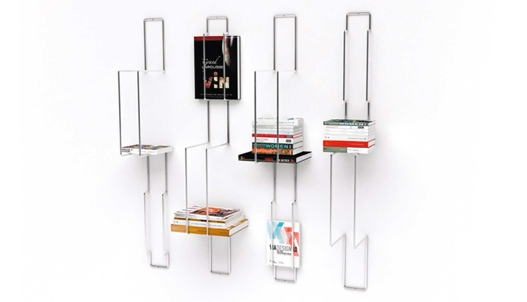 Biblioteczka GRID oferuje kombinację stalowych półek, dzięki której zmiana układu tytułów jest prosta jak przewrócenie kartki kryminału. W dodatku nawet autor projektu Thibault Pougeoise nazywa się interesująco i literacko.