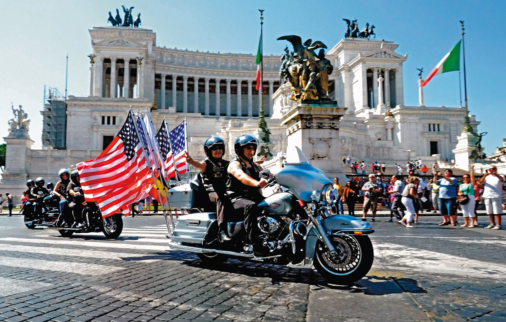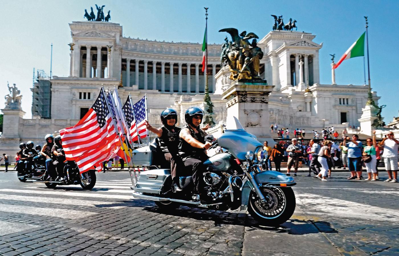 Okolica wita ich zwiększonymi cenami benzyny: benzyniarze uprzejmi i uśmiechnięci. Hotelarze wniebowzięci. Właściciele kafejek nadskakujący. Rzym czuje interes: sam szef miejskiej izby turystycznej wylewnie wita harleyowców. Akurat to miasto często miało do czynienia z barbarzyńcami. Jeździec w czarnych skórach, z czaszkami jako graficzną dominantą stroju, powiewający ogonami martwych zwierząt w 2013 r. jest już tylko portfelem i dostaje najlepsze miejsce w restauracji.