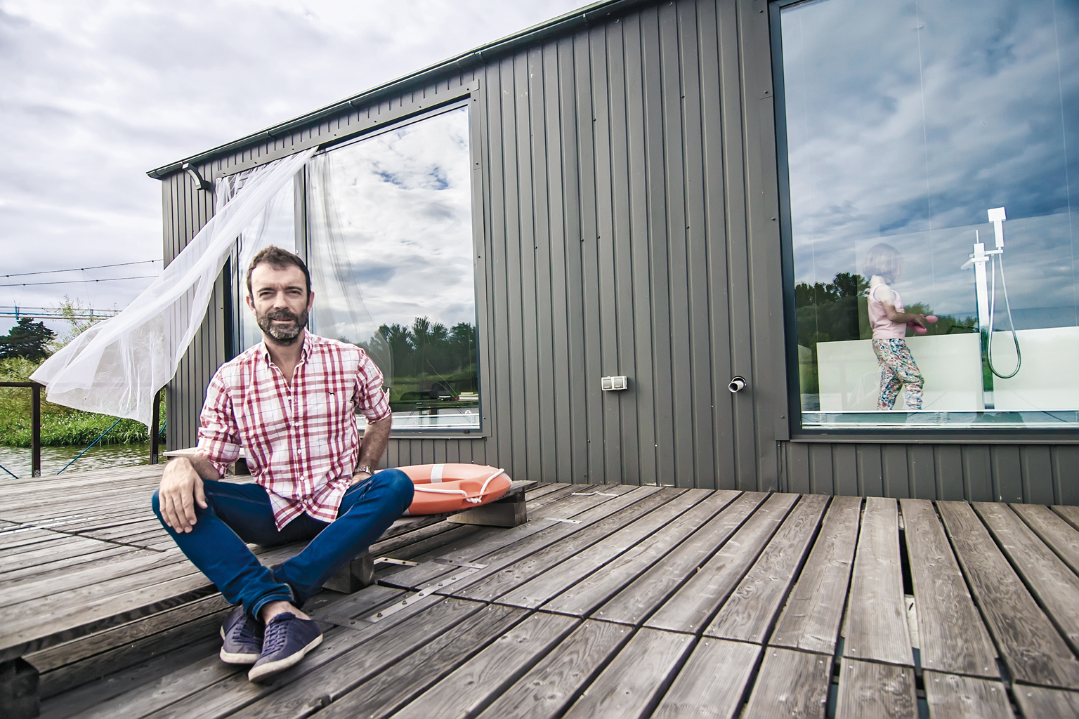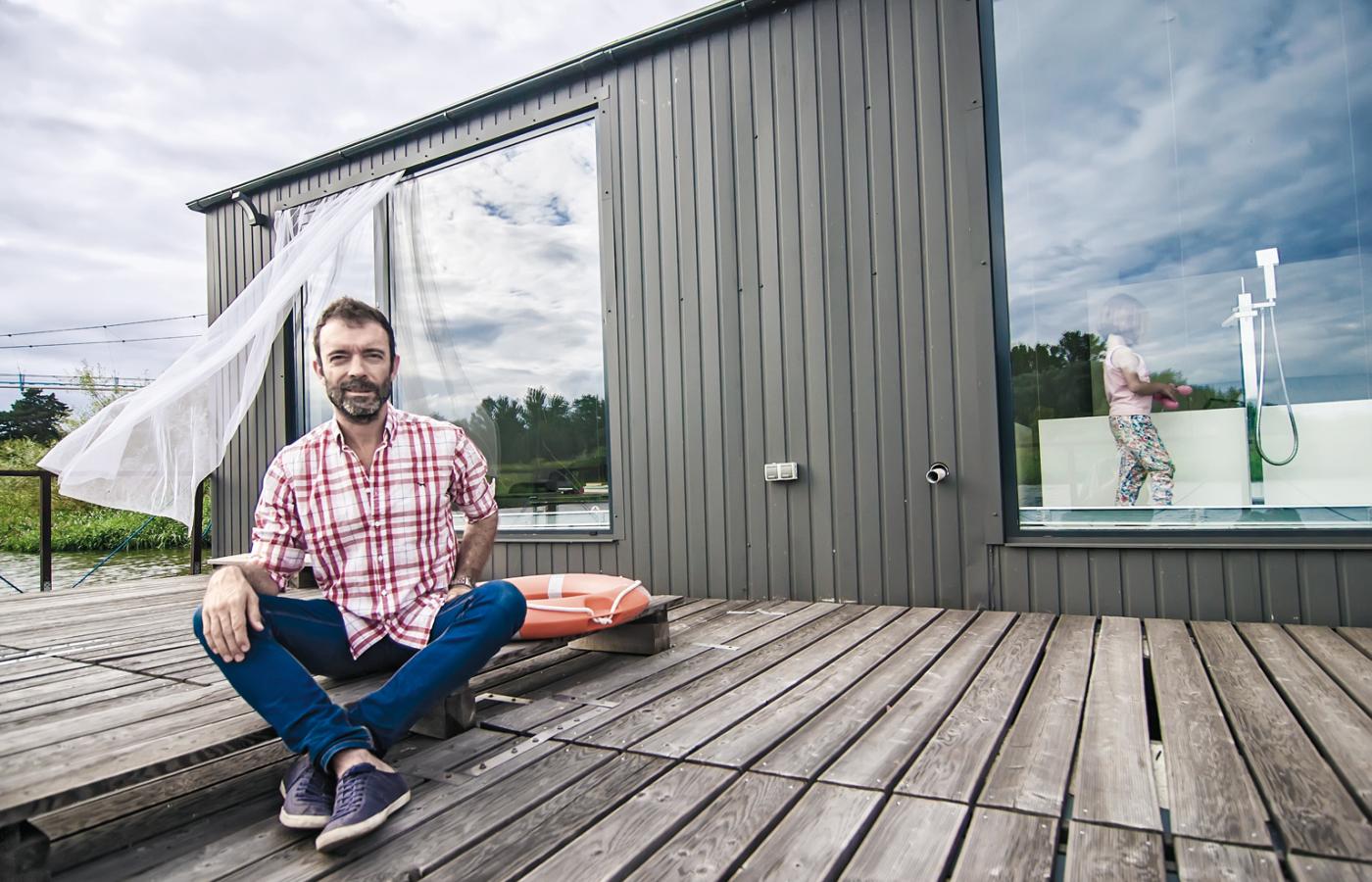 Zaremba zdecydował się na wykonanie konstrukcji wolnej od wad barek, na których skrapla się woda, a potem wyrasta grzyb i pleśń. Architekt Paweł Barczyk zaprojektował funkcjonalne rozprowadzenie wszystkich instalacji, modernistyczne rozwiązanie w kształcie prostokąta z trawnikiem na dachu. Materiały stosowane przy budowie domu na wodzie są dokładnie takie same jak w domu tradycyjnym. Tajemnica tkwi jednak w betonowych kadłubach, których konstrukcja sprawia, że pływają jak statek. W pierwszej chwili wydaje się dziwne, że taki dom utrzymuje się na tafli rzeki. 200 m kw. powierzchni mieszkalnej, łazienki, kuchnia, cztery pokoje i salon. Aby odczuć obecność wody, wielkie okna z hartowanego szkła sięgają samej podłogi. Ściany obite puszystym materiałem ocieplają wnętrze, a konstrukcja stoi na ważącym 130 ton betonowym pływaku, wewnątrz którego osadzone są na wzór szachownicy grodzie z płytami styropianu.