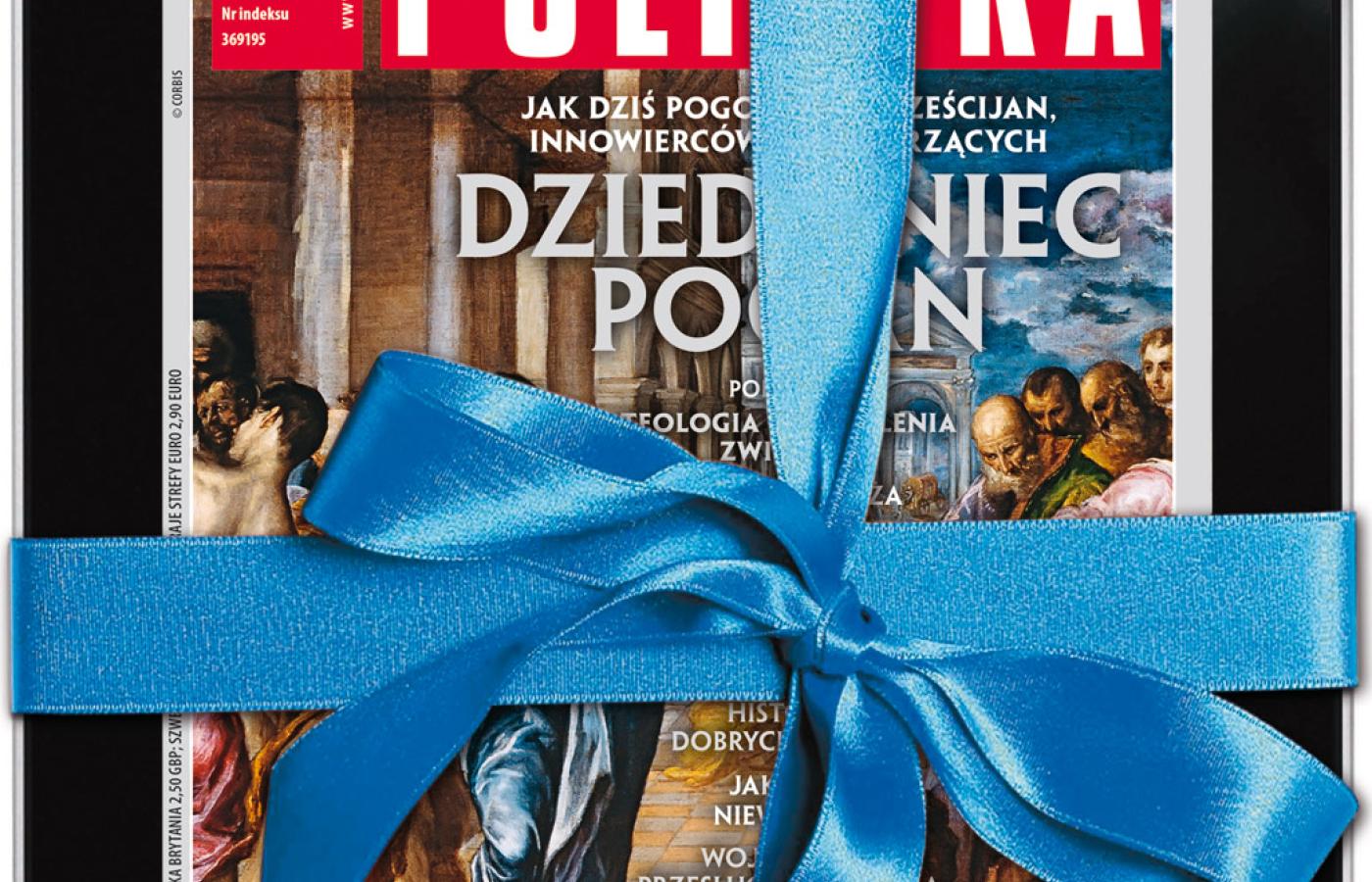 Wciąż szukają Państwo prezentu pod choinkę dla swoich bliskich, przyjaciół i znajomych w Polsce lub za granicą? Podarujcie to, co (jak sądzimy) sami lubicie. Czyli POLITYKĘ. Tyle że w wygodnej, nowoczesnej formie. Polityka Cyfrowa to możliwość cotygodniowej lektury naszego tygodnika na ekranie komputera, laptopa, tabletu czy smartfona. Oprócz samego tygodnika obdarowani otrzymają dostęp do naszych wydań specjalnych („Niezbędnik Inteligenta”, „Poradnik Psychologiczny Ja My Oni”, „Pomocnik Historyczny”), a także nieograniczony dostęp do naszej strony internetowej i archiwum POLITYKI. Bonusem jest specjalnie zaprojektowana kartka elektroniczna z przygotowaną przez Państwa spersonalizowaną wiadomością. Do wyboru prenumerata roczna lub kwartalna (tańsza niż papierowa). Wszystko do załatwienia w ciągu kilku minut w kilku prostych krokach na www.polityka.pl/cyfrowa.