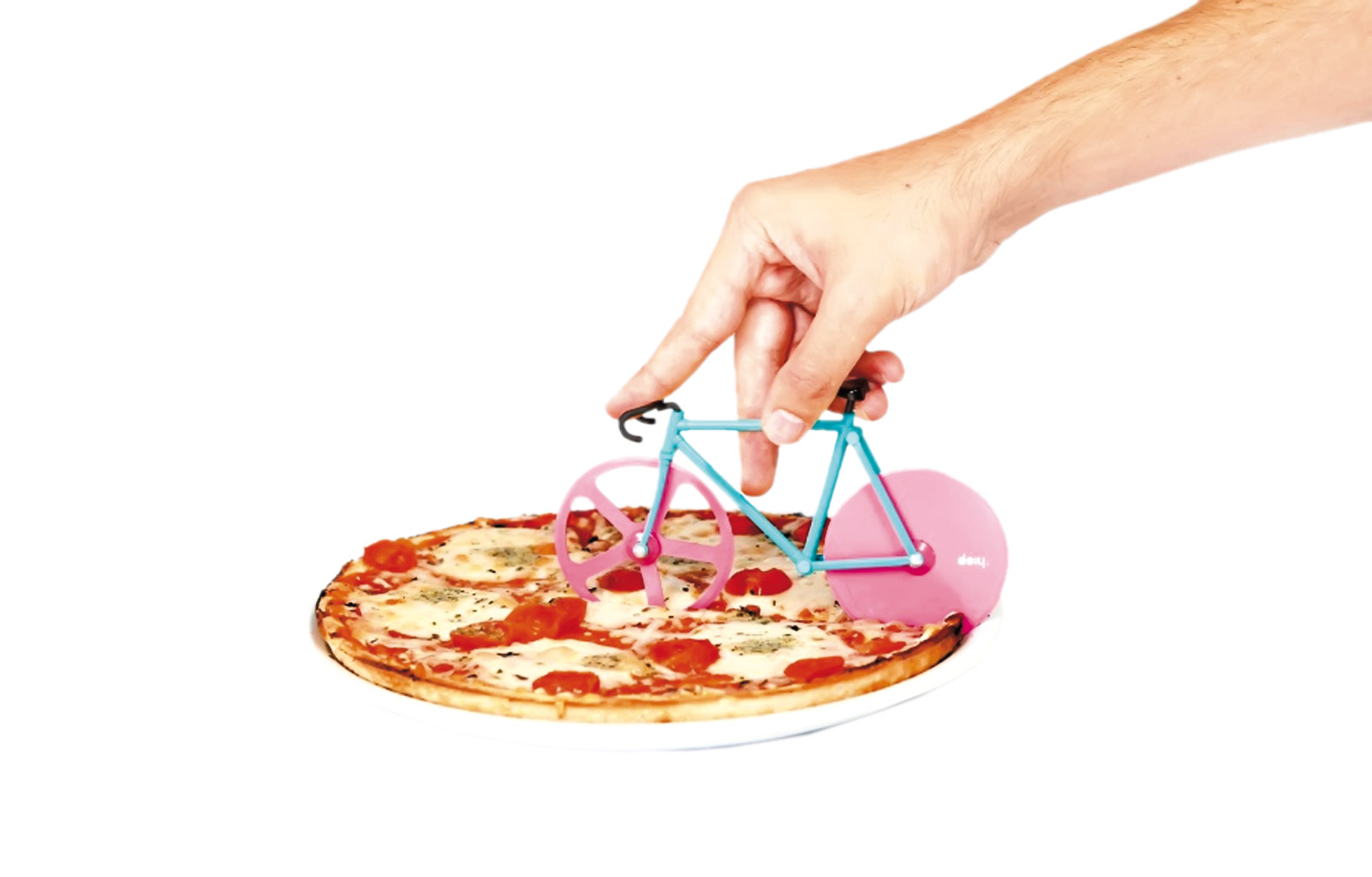 Sezon dla cyklistów rozpoczął się wprawdzie kilka tygodni temu, ale jeszcze nie wszyscy zdążyli obudzić w sobie sportowca. Specjalnie dla nich proponujemy nietypową rozgrzewkę i to połączoną z ładowaniem węgli, co w sportowym slangu oznacza najedzenie się makaronu, ryżu lub pieczywa, żeby mieć energię na bardzo długie trasy. Wystarczy wypiec domową pizzę (albo zamówić ją przez telefon, tylko trzeba poprosić, by obsługa jej nie kroiła), wziąć w rękę Fixie Pizza Cutter (nacinacz pizzy) i zacząć nim... jeździć. Gdy opanujemy podstawową trasę (mniej więcej w połowie pizzy), możemy wejść na wyższy stopień trudności i trenować zakręty lub ciąć ciasto na cienkie paseczki. A potem wystarczy powtórzyć to samo na ścieżce rowerowej.