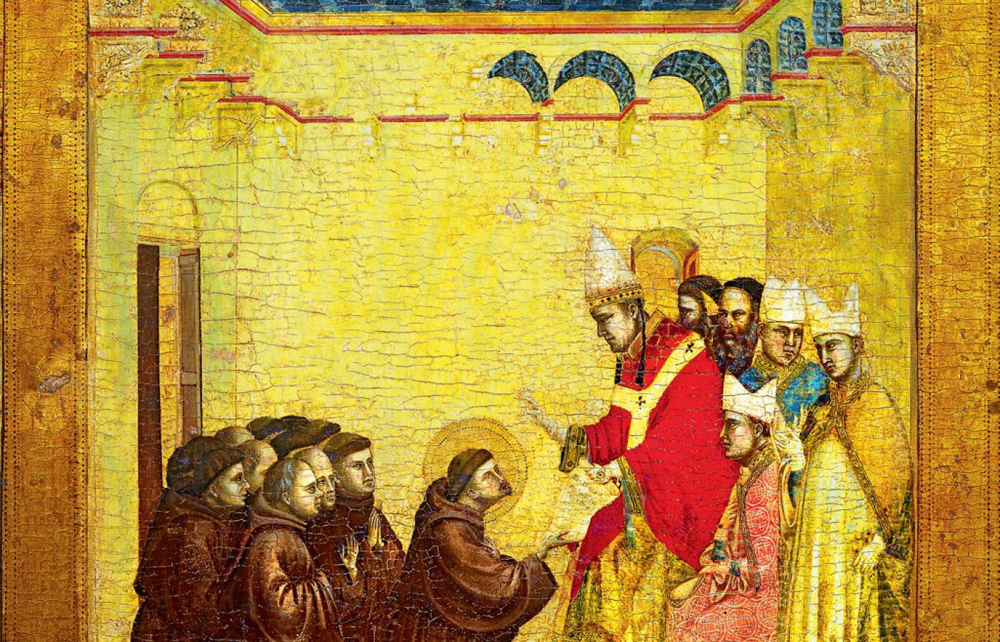 To najświeższe przykłady na stare jak Kościół napięcie między dążeniem do ubóstwa i skłonnością do bogactwa. Jest ono wpisane w historię Kościoła, zwłaszcza rzymskokatolickiego, bo nie da się do końca rozładować sprzeczności między Ewangelią nakazującą ubóstwo a instytucją mającą ambicje i zadania doczesne, w tym polityczne, do czego potrzeba pieniędzy. Wspaniale uchwycił to Giotto, malując scenę, w której Biedaczyna z Asyżu, św. Franciszek, otrzymuje od papieża Innocentego III zgodę na swój zakon żebraczy. Papież na tronie, pięknie ubrany, przy nim siedzą inni pięknie odziani prałaci, Franciszek z gromadką mnichów, wszyscy w zgrzebnych habitach i na klęczkach przed majestatem. Która grupa ludzi Kościoła jest tu prawdziwym Kościołem? Ta siedząca wokół papieża na tronie czy ta klęcząca w pokornym uniżeniu? Ta mająca władzę i bogactwo czy ta wyrzekająca się władzy i bogactwa, aby służyć bliźnim?