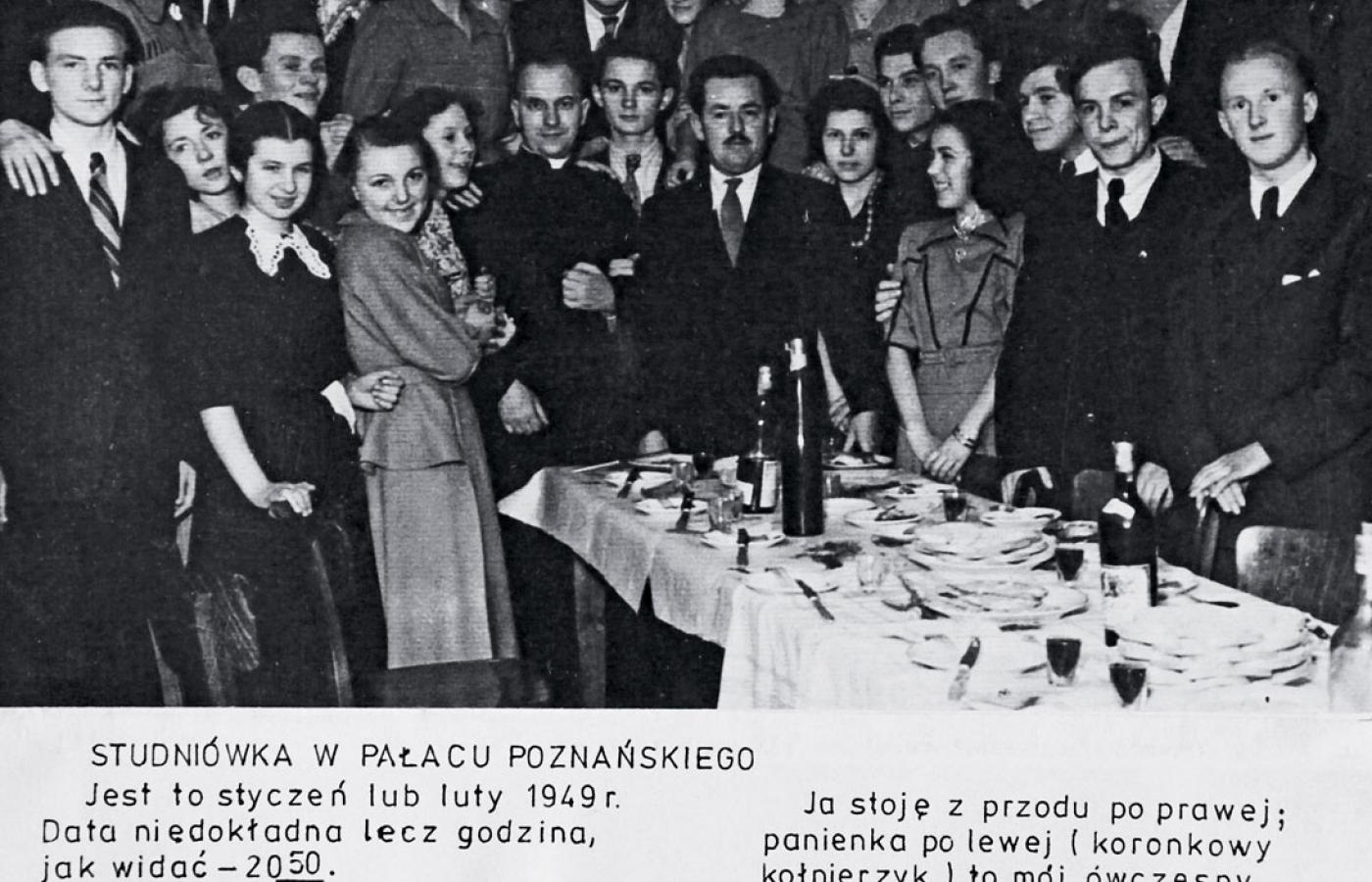Uczy się i pracuje od poniedziałku do soboty. W domu jest o godz. 19. Bywa, że wschodzi słońce, kiedy jeszcze siedzi nad książką. Matka, robotnica w przędzalni, zamartwia się, czy syn to przeżyje. Preludium do matury jest studniówka w Pałacu Poznańskiego. Uwiecznia ją zdjęcie z urodziwą Krysią Perlińską. Nie wierzy, że się jej może podobać, bo niski, już świecący łysinką.