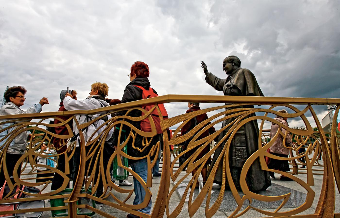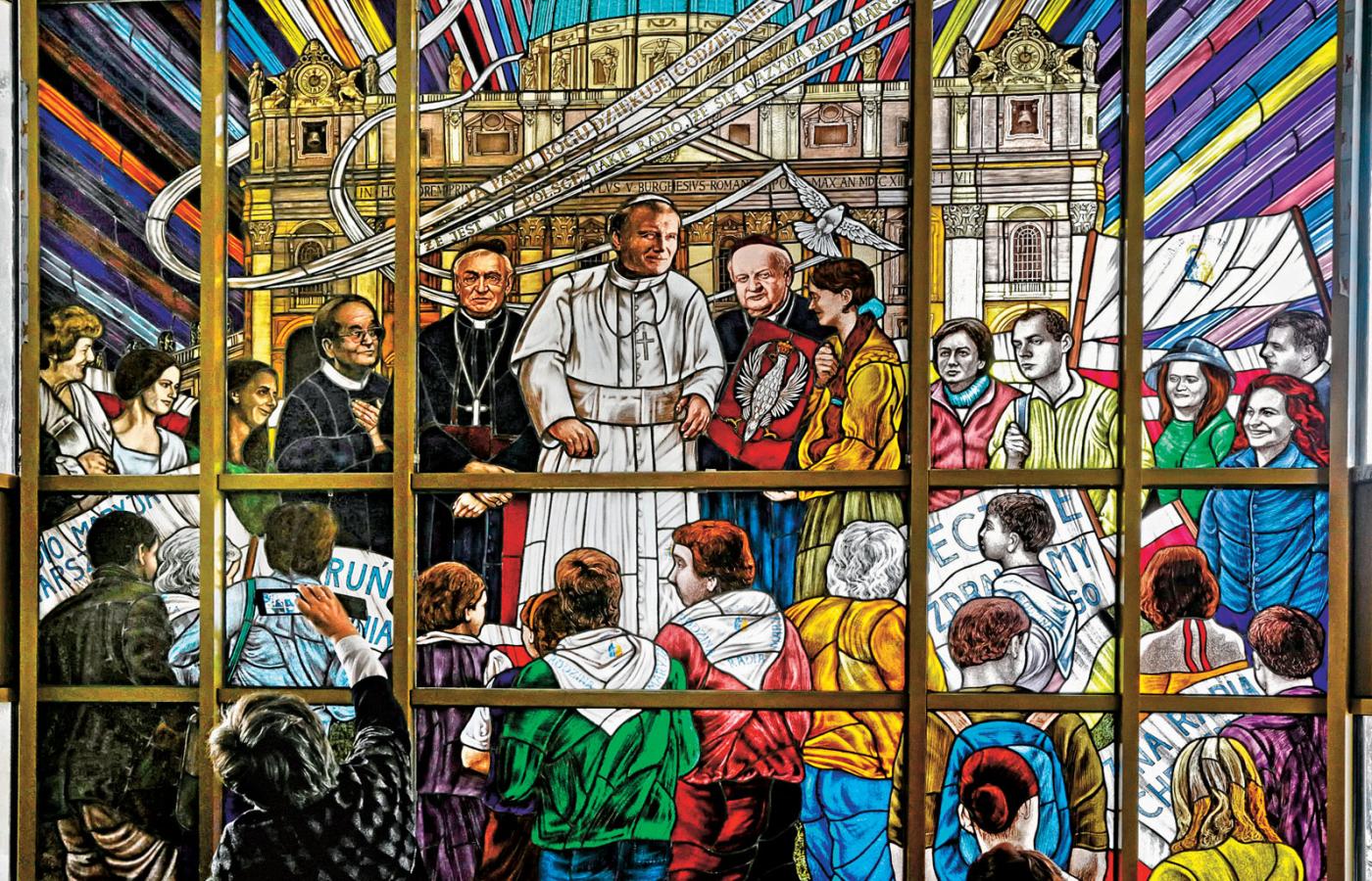 Inni młodsi sympatycy Radia Maryja i Telewizji Trwam w środy zapewne po prostu pracują. A uroczyste poświęcenie musiało się odbyć właśnie 18 maja, w dzień urodzin Jana Pawła II, patrona nowego kościoła. Ojciec Dyrektor co prawda nie był blisko z Ojcem Świętym, podobno bezskutecznie przez wszystkie lata pontyfikatu Karola Wojtyły zabiegał o prywatną audiencję – nie licząc spotkania z nim w 1986 r., po którym nie wrócił z pielgrzymami do kraju. Jednak postać papieża uczynił centralną dla nowego kościoła, który sam w sobie jest wotum dziękczynnym za jego pontyfikat.