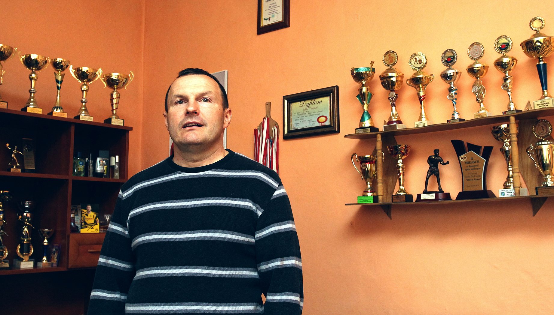 Jeśli jest wcześniej, siada na granatowej wersalce, pod szafą ze swoimi pucharami, je bułkę i dzwoni do znajomych trenerów: Pogramy w tym tygodniu? Potem wychodzi na podwórko skorzystać z toalety, rozkłada wersalkę, przebiera się w piżamę. Na tapczanie dwa metry dalej, w tym samym pokoju, zazwyczaj śpi już matka. Gdy są gorsze miesiące i nie uda się kupić węgla, zimą kładą się w kurtkach i czapkach. Marek Chybiński, lat 40. Mistrz Polski niepełnosprawnych w tenisie stołowym.