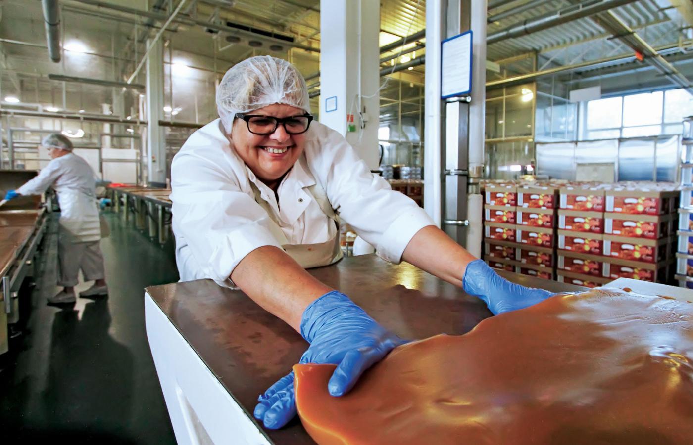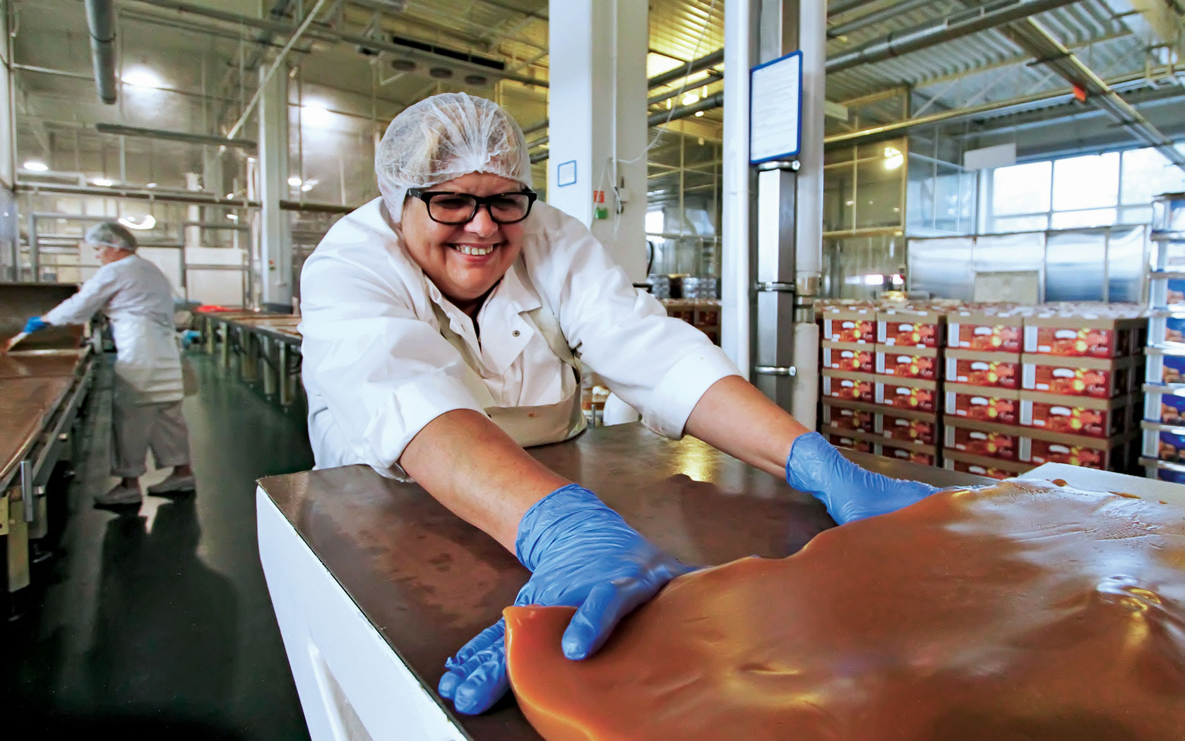 Trufla pomarańczowa dała się Barbarze we znaki. Etykieta była ładna, ale trudna do zawijania. A skręt cukierka musiał być estetyczny i mocny. Zawijała dziennie 80 kg cukierków – to dużo, ale i tak o 40 kg mniej od rekordzistek. Wysiadały ścięgna w nadgarstku i bolał kręgosłup od siedzenia w nachylonej pozycji. Ale Barbara Dybała nie narzeka, bo cukierki uratowały ją przed bezrobociem. Kiedy przyszła w 1995 r. do Spółdzielni Pracy Solidarność w Lublinie, było jeszcze zapotrzebowanie na ręczną pracę – a więc w sam raz dla niej, wtedy trzydziestokilkulatki z grupą inwalidzką, która straciła etat pomocy nauczycielki w przedszkolu. Ale kilka lat później mechanizacja zaczęła zabierać ludziom robotę. Jedna maszyna zawija 600 cukierków na minutę. Dla Barbary jeszcze starczało ręcznej pracy przy pakowaniu i ważeniu. Dziś ma 54 lata. Jej historia w Solidarności już się skończyła. Tak jak Solidarności.