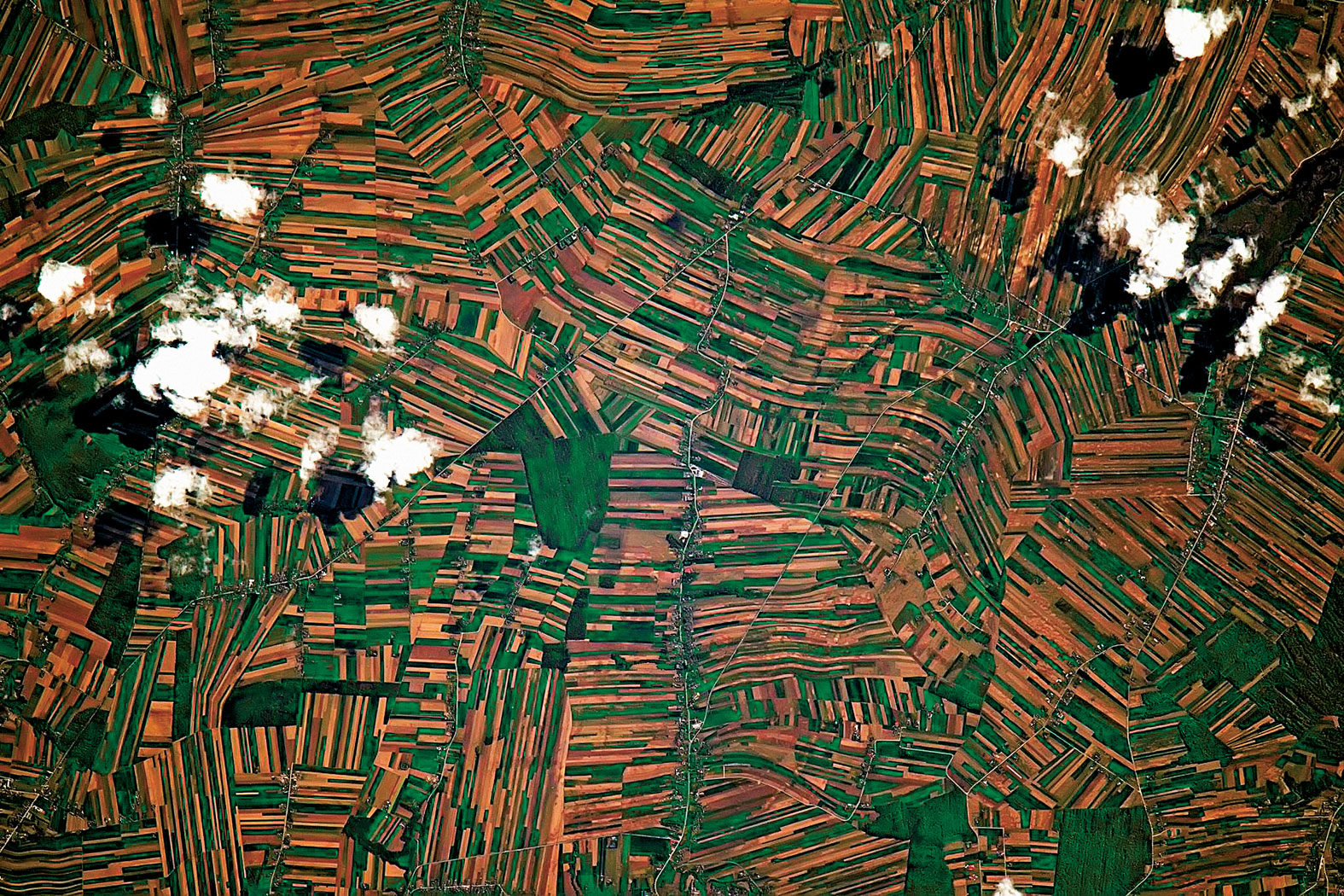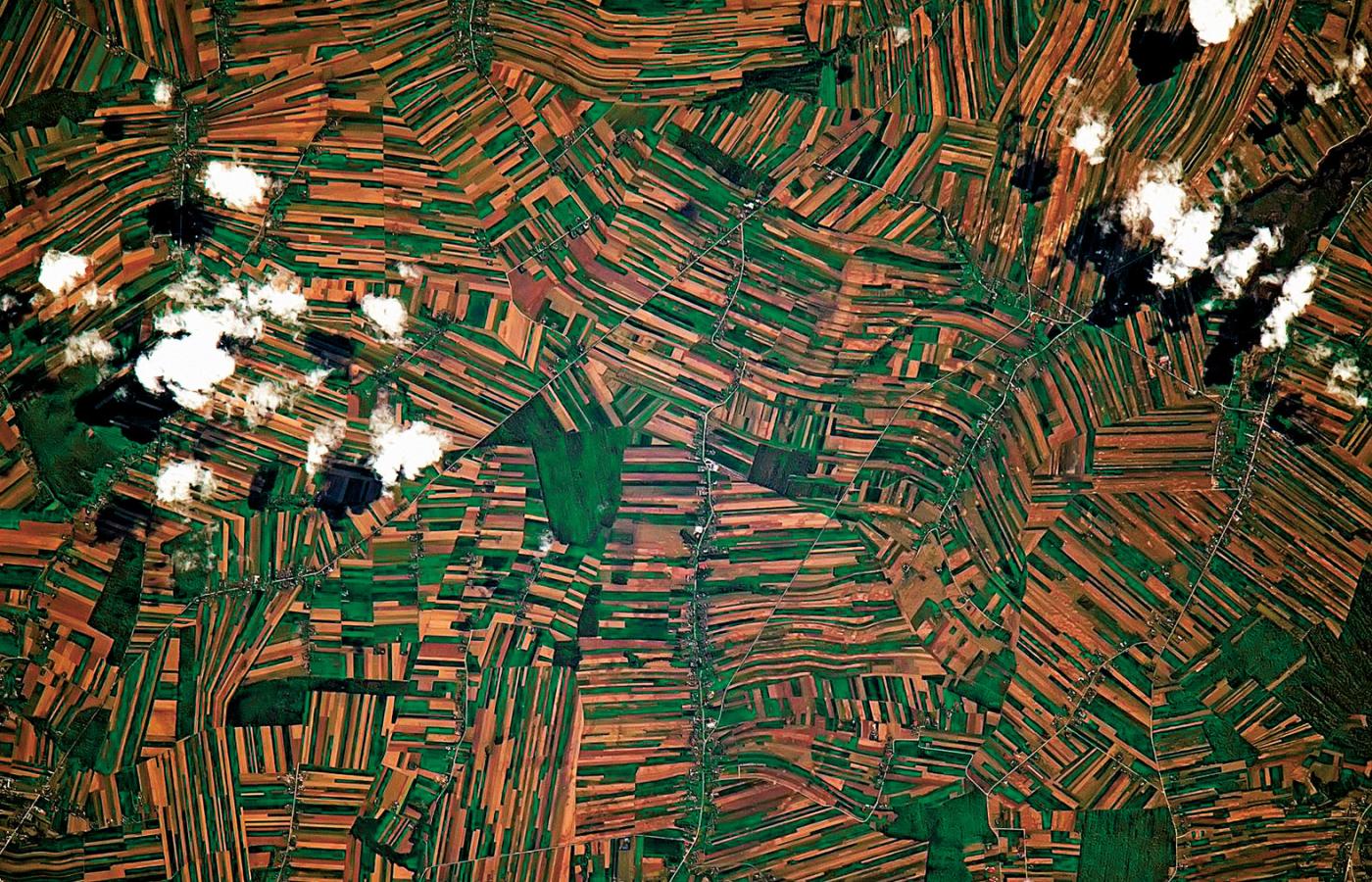 Dla uwypuklenia tego, o czym pisze, wrzucił banalne z wyglądu rolnicze pejzaże pól ryżowych w Tajlandii, osadę w boliwijskiej dżungli, jednostajne farmy kukurydziane w Ameryce. Był tak zaintrygowany, że poprosił śledzących go fanów na dole, aby pomogli znaleźć, gdzie na globie leży takie oszałamiające coś. (Widocznie zdjęcie robił z ręki, skoro nie znał współczynników położenia. A może był to tylko quiz?).