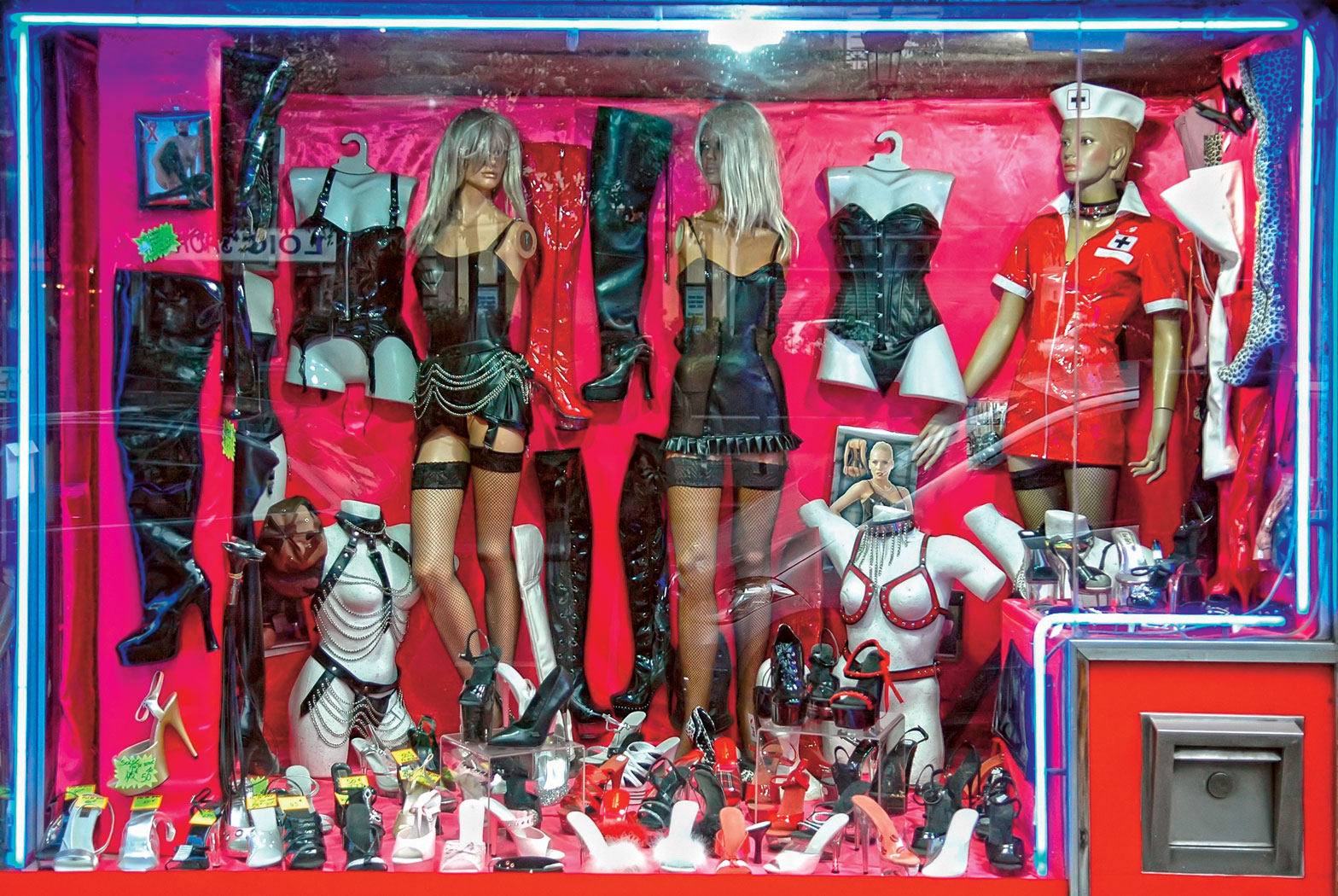 Pani Aneta profesjonalnie wodzi klientów między półkami. Wodzi dosłownie i w przenośni, bo jak tylko ktoś sięga po wibrator, to sprzedawczyni od razu proponuje mu baterie. Namawia na żelik. Jak widzi, że klient rokuje, to ciągnie na dział przebieranki. Wiadomo, każdy chce mieć kociaka w łóżku, a tak się szczęśliwie składa, że pani Aneta ma właśnie taki strój na półce. Jest i zakonnica (kompletnie się nie sprzedaje, ale o tym klientowi się nie mówi), i pokojówka (lider sprzedaży, o czym można wspomnieć). Jeśli klient ma partnera mężczyznę, to można kupić dla niego lateksową kominiarkę z wycięciem na oczy i usta. Na rower się to raczej nie nadaje, za to w sypialni podobno można w tym wytrzymać nawet dłuższą chwilę. Do tego męskie stringi, zwane w branży hamakiem.