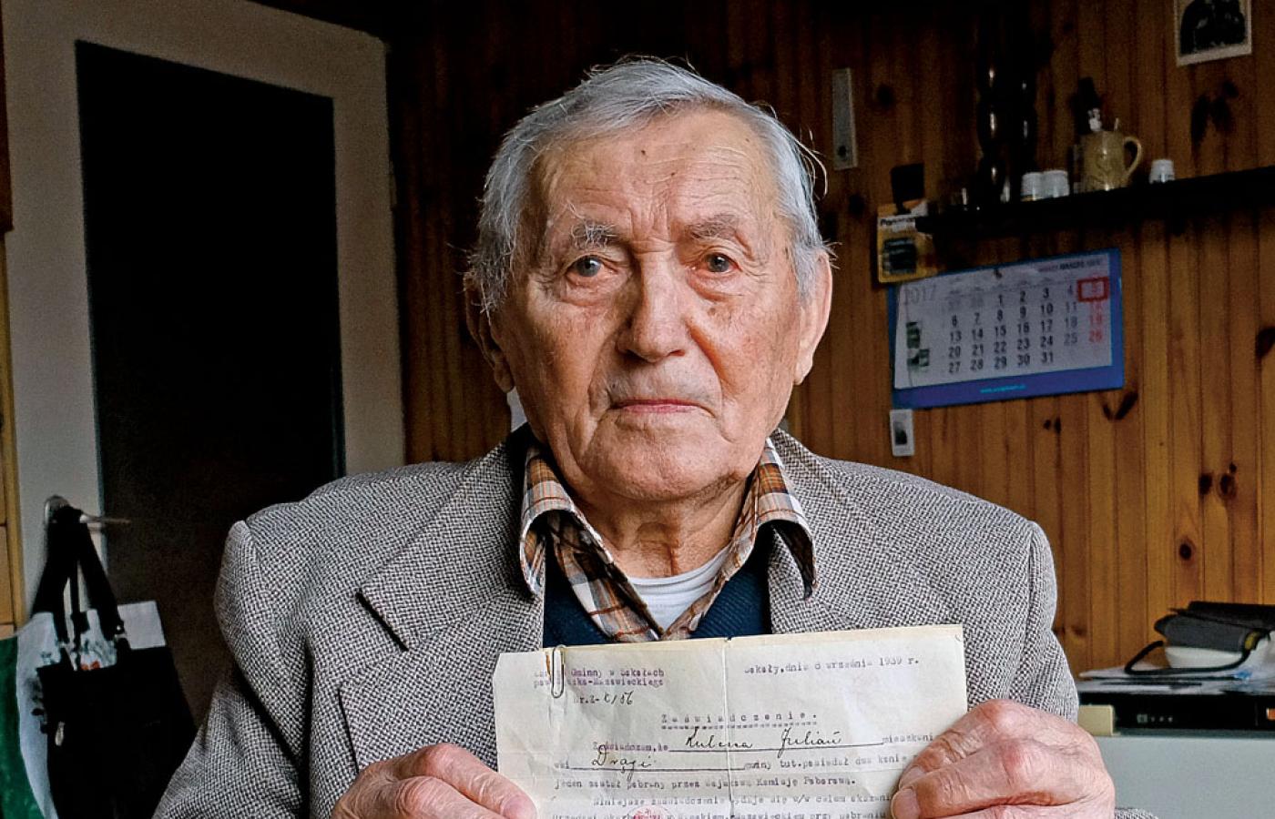 Zanim opowie, co było dalej, zostanie przy 1939 r. Otóż już w dniu hitlerowskiego ataku poszła po gminach powiastka, że stacjonująca w Poświętnem nadzwyczajna komisja prosi posiadaczy niezbędnych wojsku akcesoriów, w tym wałachów, narzędzi, bryczek i innych, by stawili się niezwłocznie. Prowadząc z ojcem konika na podarowanie ojczyźnie, mijali pewne siebie szwabskie motocykle, które pędziły w tumanach kurzu bez żadnej przeszkody. Niedozbrojeni nasi nie dawali rady ich powstrzymać. Biorąc pod uwagę tak dramatyczne okoliczności, ojciec Juliana Kuleszy konia nie żałował. Jako sołtys we wsi Drągi, gmina Sokoły, i żołnierz carski strofował 12-letniego wówczas syna, by nie mazgaił się, skoro sprawa wzywa.