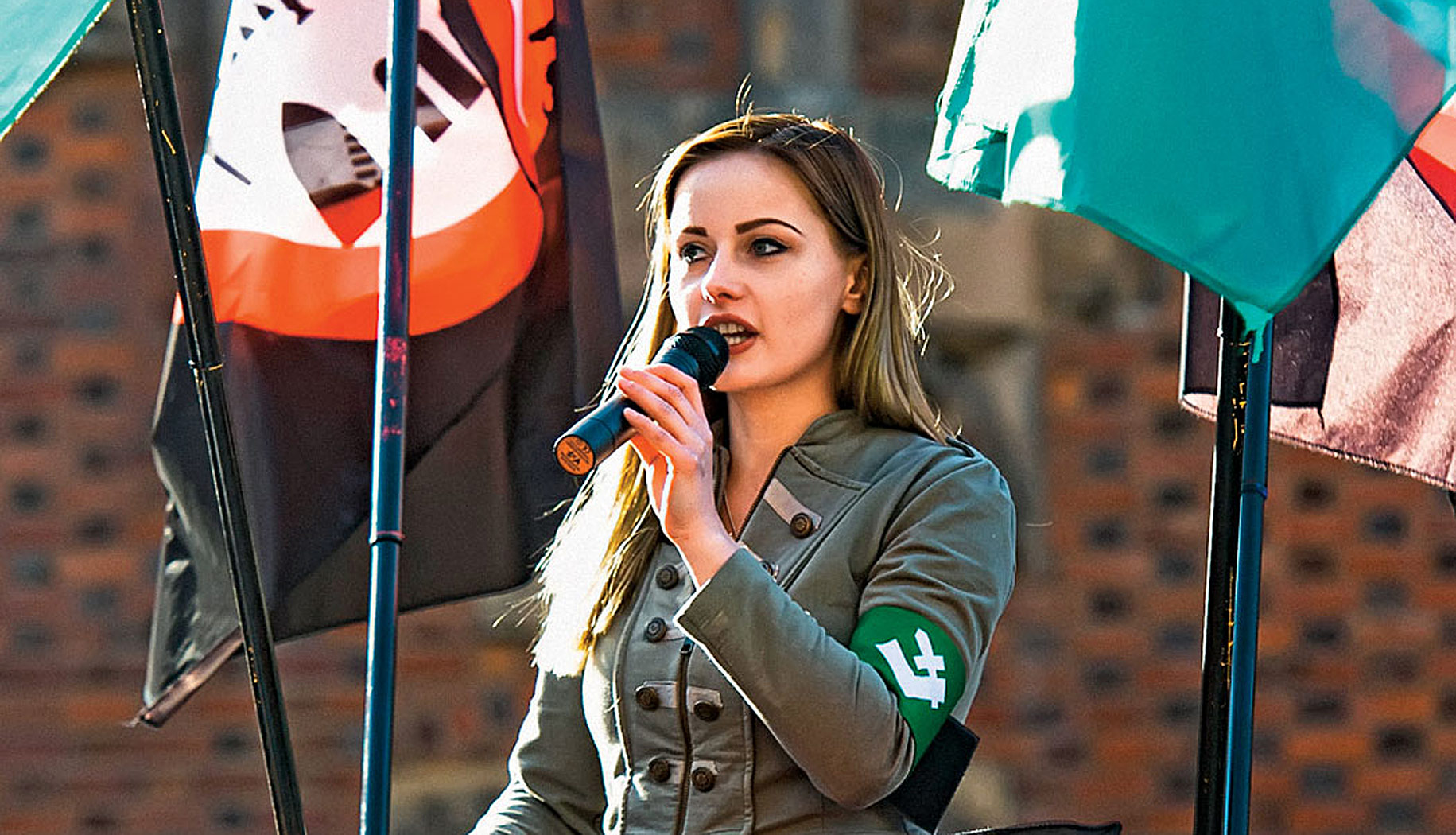 Wydawała się subtelna, wręcz eteryczna, dopóki się nie odezwała. Gdy stanęła na platformie, krzykiem nawoływała do ostatecznego zrzucenia jarzma babilońskiej nierządnicy i wypędzenia z Polski siewców wrogiej ideologii. Przestrzegała – nie można pozwolić, aby przybysze wyrżnęli nas wszystkich w pień, aby islamskie ścierwo niszczyło polski naród. Tymi właśnie słowami, wygłoszonymi we wrześniu 2015 r. na wiecu antyimigranckim we Wrocławiu, Justyna Helcyk, absolwentka chemii pochodząca z Lądka-Zdroju i koordynatorka brygady dolnośląskiej ONR, zapisała się w zbiorowej świadomości jako nowa kobieca twarz narodowego radykalizmu w Polsce. Pod yutubowym nagraniem z jej słynnego przemówienia, w którym zresztą wrocławska prokuratura nie dopatrzyła się nawoływania do nienawiści i na początku maja tego roku śledztwo w sprawie zostało ostatecznie umorzone, do dziś sypią się zachwyty patriotycznej części społeczeństwa. Że taka mądra i charyzmatyczna, prawdziwa Polka, idealny materiał na żonę, i że na całe szczęście coraz więcej pojawia się takich kobiet.