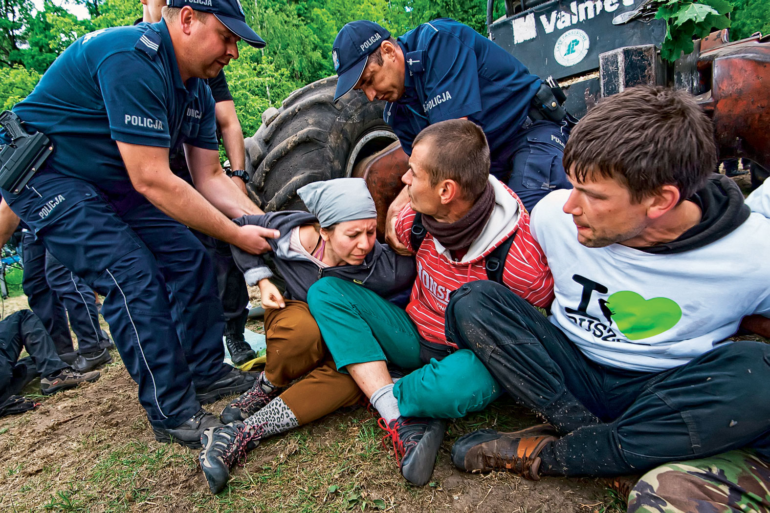 Absurdalne? To metoda już ćwiczona przez władze. Imienne wezwania do zapłaty po ponad 10 tys. zł dostali ekolodzy protestujący przeciw wycince Puszczy Białowieskiej w strefach ochronnych UNESCO. Do tej pory wysłano 78 takich wezwań, termin do zapłaty: 7 dni. Pisma, „w uzgodnieniu z przełożonymi”, nakazał wystawiać Jerzy Rosiński, dyrektor Zakładu Transportu i Spedycji Lasów Państwowych w Giżycku, spółki podległej Dyrekcji Lasów Państwowych. Dane osobowe dostał od policji, która legitymowała protestujących. Jak pisze regionalna dyrekcja w Białymstoku, w odpowiedzi na pytania POLITYKI, dyrektor zakładu jest zobowiązany dbać o interes Skarbu Państwa. A ten – wedle logiki lasów – jest stratny za sprawą ekologów, bo nie uzyskał zarobku na wyciętych drzewach.
