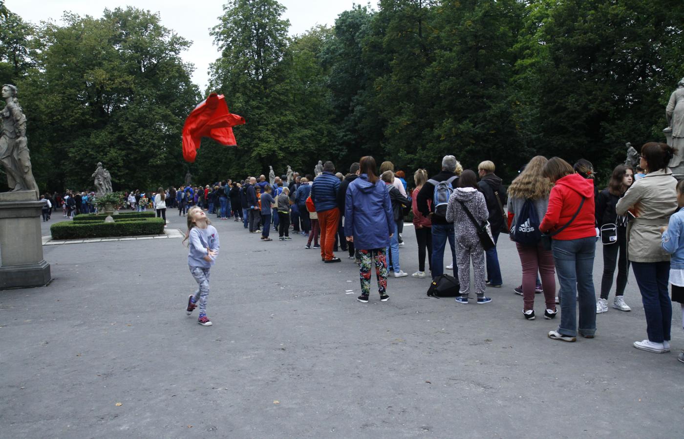Pod Pałacem Kultury i Nauki trwają przepychanki w stylu nie stałeś tu. Za kilka godzin przyjdzie youtuberka Kompleksiara pozować do selfie z każdym z osobna, a Pałac to modna miejscówka ze względu na tło w stylu retro. Czekający w ćwierćkilometrowym ogonie pokazują sobie w telefonach, kogo już udało im się wystać.