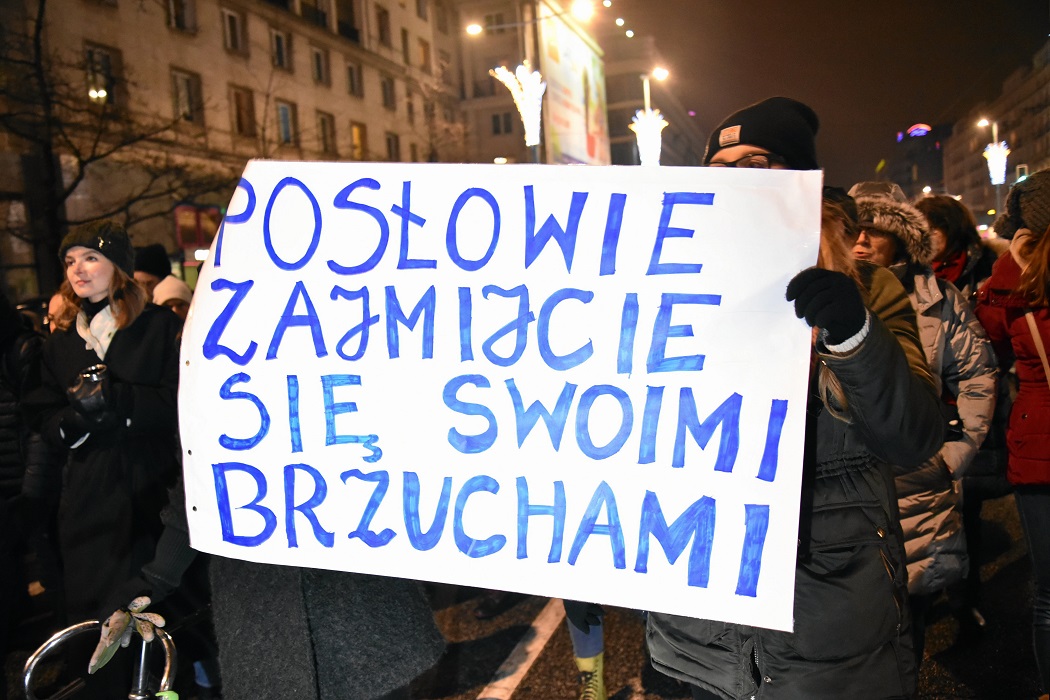 Działaczki Strajku Kobiet postawiły na dynamiczną, nie wiecową formułę, która świetnie się sprawdziła przy minusowej temperaturze. Niemniej nie mogło się obyć bez co najmniej kilku opowieści o Polkach: ciężarnej mieszkance małego miasta, która musi trzyletniej córeczce wyjaśnić swój smutek i traumę po zdiagnozowaniu nieprawidłowości płodu w kolejnej ciąży, młodej kobiety w Polsce, która buntuje się, że jest dla rządzących tylko maszyną do rodzenia, czy o Polsce ogarniętej klerykalizmem. „PiS-ie, będziesz miał krew na rękach” – dramatycznie ostrzegała aktywistka Warszawskiego Strajku i Kongresu Świeckości Bożena Przyłuska przed przyjęciem projektu złożonego przez komitet „Stop aborcji”.