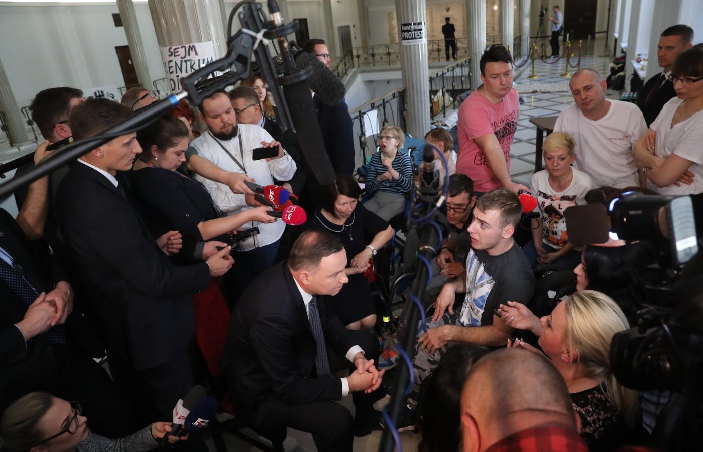 Do protestujących w piątek przyjechał Andrzej Duda. Prezydent zobowiązał się „porozmawiać z minister Rafalską i przygotować projekt ustawy o osobach niepełnosprawnych”. Minister w Kancelarii Prezydenta Wojciech Kolarski (na co dzień pełniący opiekę nad Biurem do spraw Wystąpień Prezydenta i Patronatów oraz Biurem Kultury i Dziedzictwa Narodowego) spotkał się z protestującymi w w gabinecie prezydenckim w Sejmie i spisał ich postulaty.