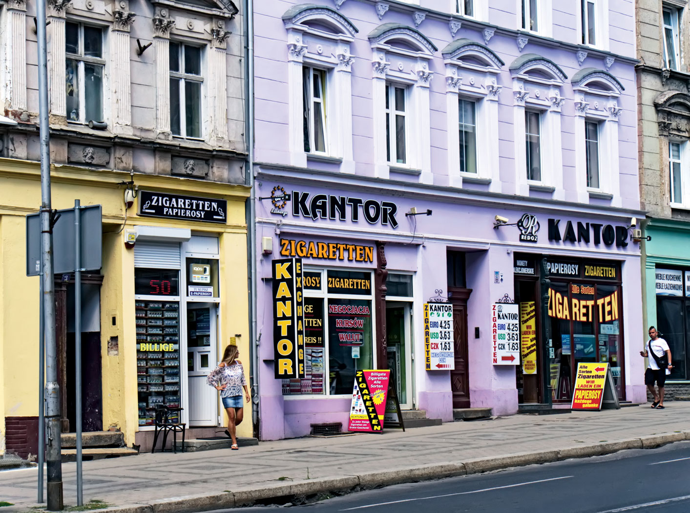 Miasta na zachodniej granicy wszystkie wyglądają podobnie – po polskiej stronie żywioł handlowo-usługowy z nieopanowanym szaleństwem reklamowych billboardów i sklepami w centrach miast; po niemieckiej pustka pośród pieczołowicie odnowionych domów. Te domy też często puste, bo masowe ruchy ludzi we współczesnej Europie przebiegają tylko w jednym kierunku – na Zachód. Dlatego na przykład w Zgorzelcu trzeba przebłagać ekipę remontową, żeby odnowiła ci mieszkanie, a tuż za rzeką, w Görlitz, zgorzeleckie ekipy biorą każde zlecenie. Główny powód, dla którego ludzie idą na Zachód, zawsze ten sam – praca za większe pieniądze.