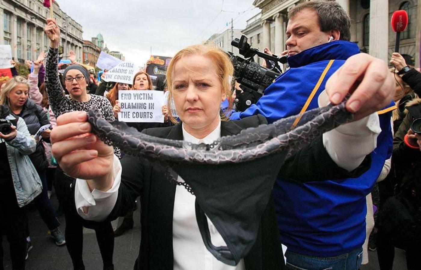 Włączyła się w ten sposób do protestu, który przetacza się przez irlandzką sferę publiczną. W ubiegłym tygodniu ława przysięgłych uniewinniła tam oskarżonego o gwałt mężczyznę. Ławnicy powinni wziąć pod uwagę, że domniemana ofiara miała na sobie koronkowe stringi – argumentowała jego adwokatka.