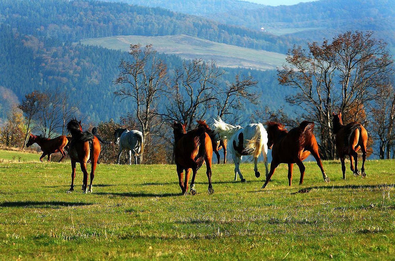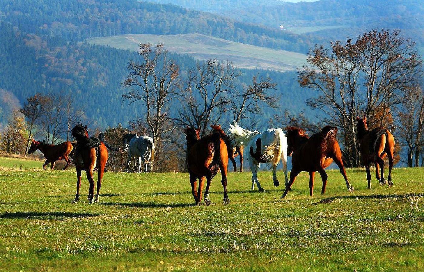 Z okien widać też konie, pasące się na łąkach araby czystej krwi, bliscy kuzyni najdroższych koni świata, koniki polskie i mieszańce. Spokojne i wolne. Podobnie jak ludzkie zespoły pracowników, konie tworzą hierarchie. Na przedzie zwykle staje dominująca klacz, za którą idzie reszta. Na końcu – ogier, przywódca, który chroni stado przed drapieżnikami.
