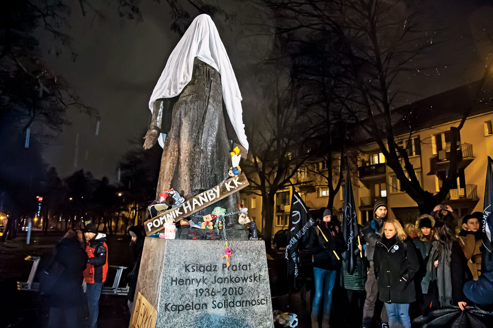 Emocje skupiły się na pomniku, którym księdza Henryka Jankowskiego upamiętniono w Gdańsku w 2012 r., dwa lata po śmierci. Stanął on na miejskim skwerku nazwanym imieniem prałata, w pobliżu kościoła św. Brygidy. Pomnik z dnia na dzień ze znaku chwały stał się miejscem całkiem innych skojarzeń. Po tym, jak w „Gazecie Wyborczej” ukazał się reportaż Bożeny Aksamit „Sekret Świętej Brygidy”. Autorka opisała w nim przypadki nadużyć seksualnych, których ks. Jankowski miał się dopuszczać wobec nieletnich. W tym historię dziewczyny, która – zgwałcona – miała popełnić samobójstwo.