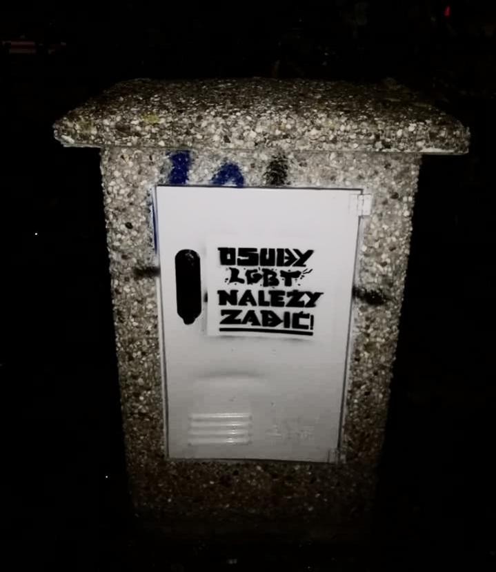 Aktywista odnalazł w parku tego 72-tysięcznego miasta sporą skrzynkę techniczną, na jakiej odmalowany z szablonu został czarny napis: „Osoby LGBT należy zabić”.